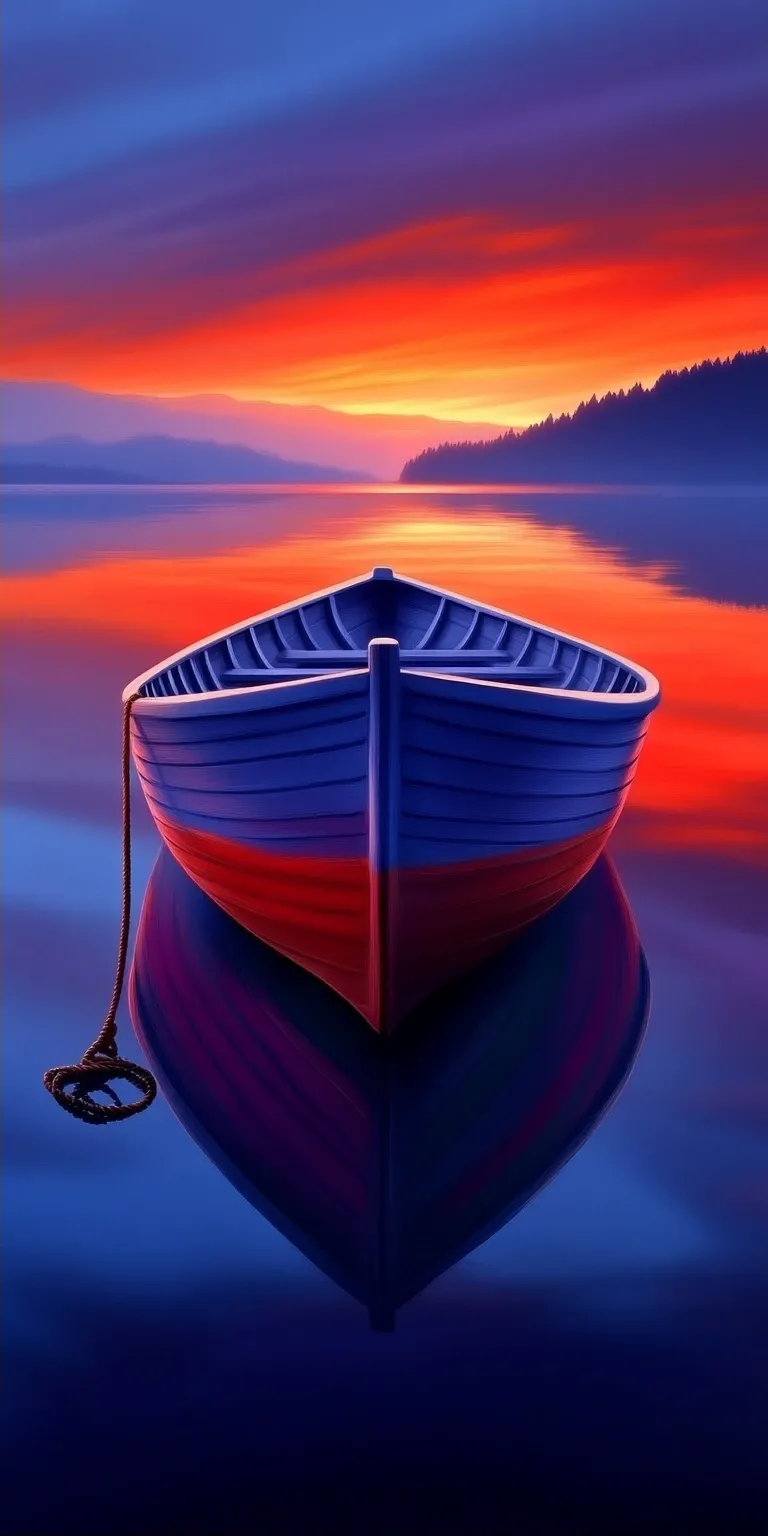 落日孤舟与红郁,静谧之美手机壁纸