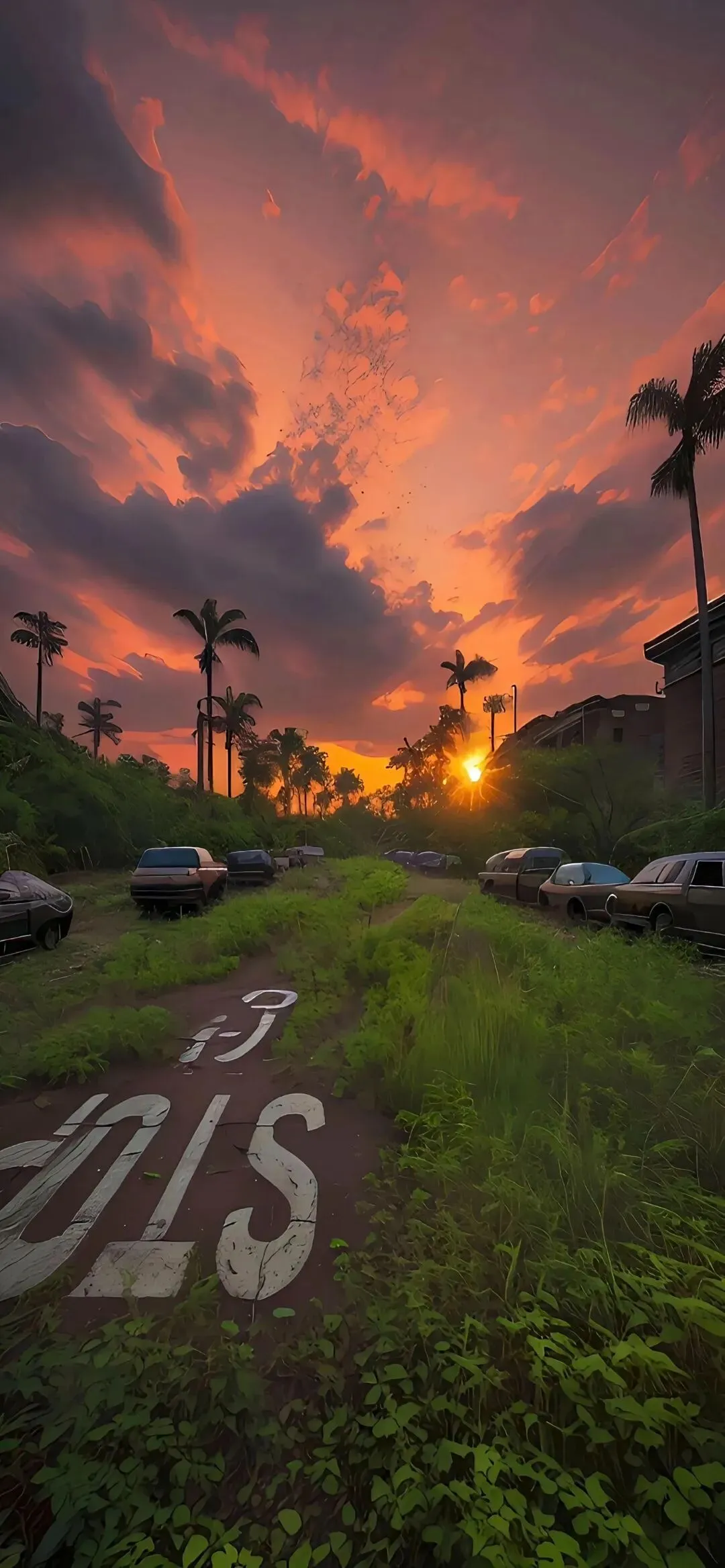 落日孤舟与红郁,静谧之美手机壁纸
