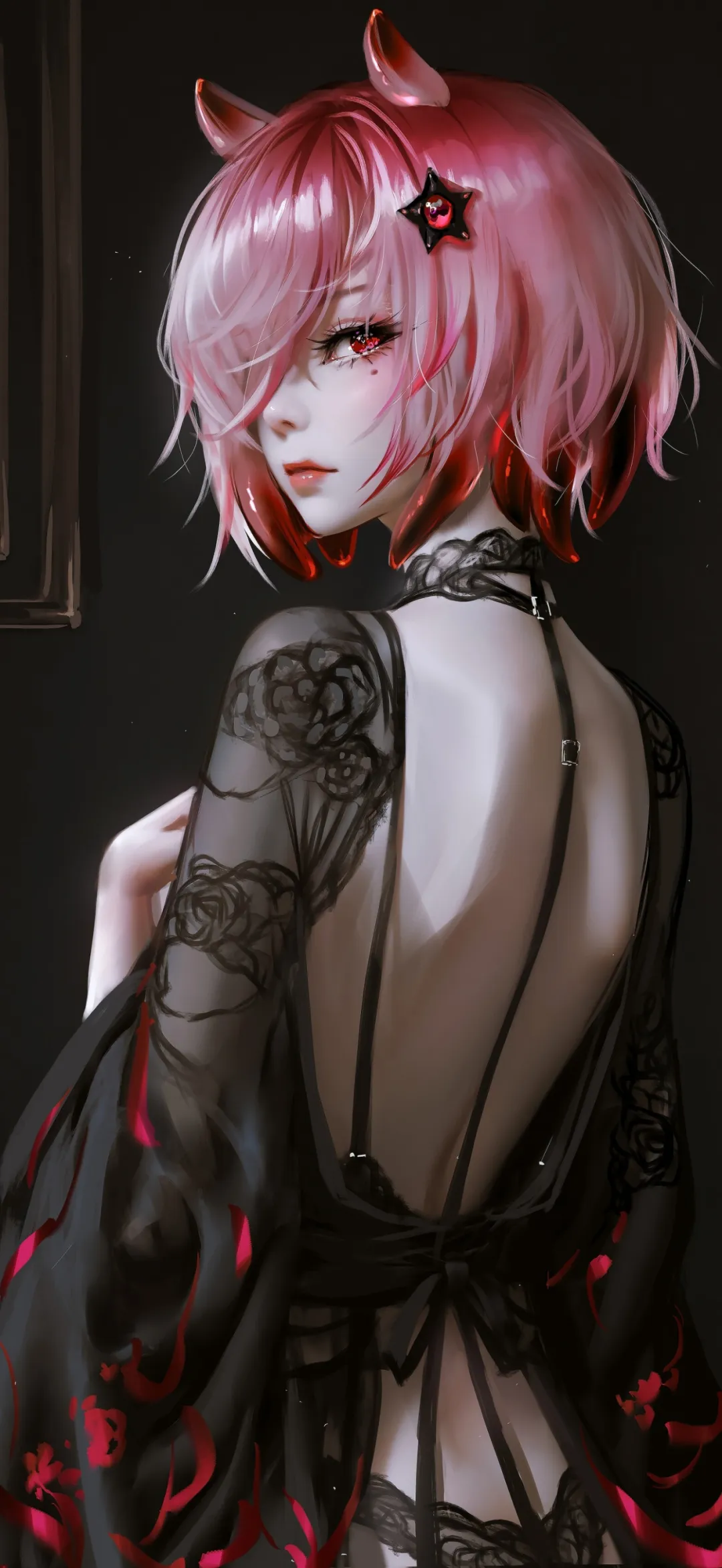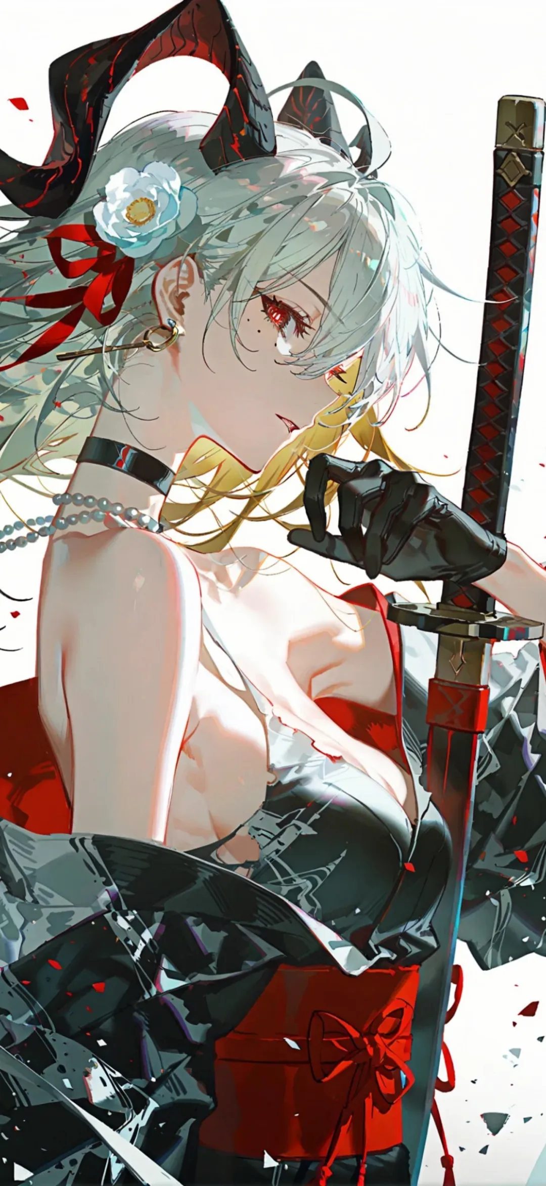 银丝飘逸,舞动暗夜之美 | 手机壁纸