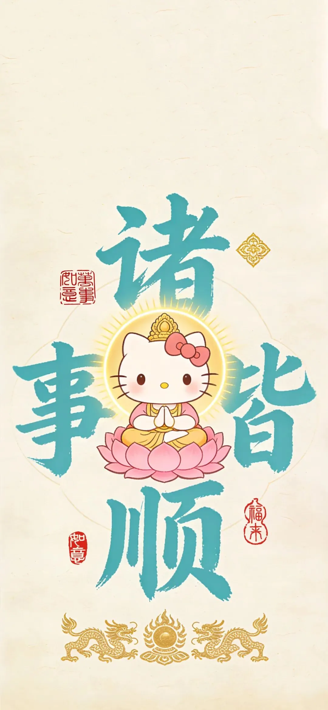 中式吉祥手机壁纸:心定万事成到花开富贵,竹月蝶影与金龙起势