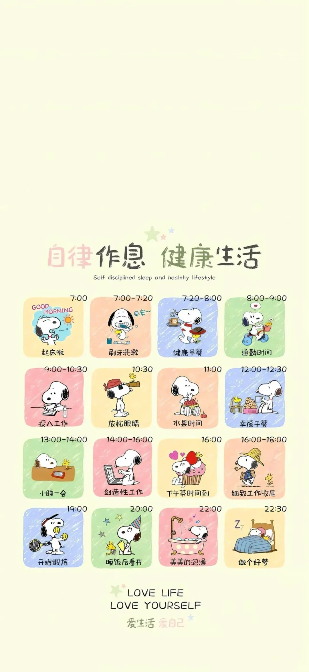 手机壁纸|自律、养生、作息、时间表,让我们一起加油吧,直接保存,提醒自己,监督自己