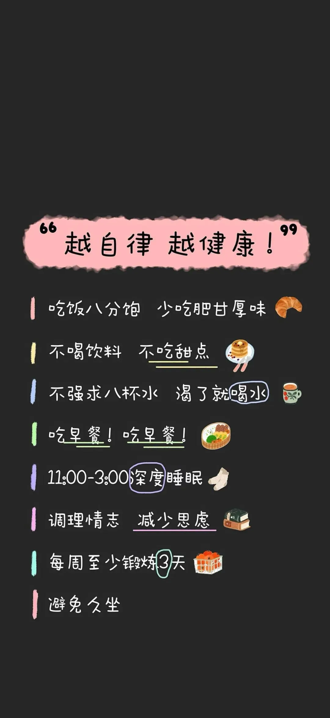 >手机壁纸|自律、养生、作息、时间表,让我们一起加油吧,直接保存,提醒自己,监督自己