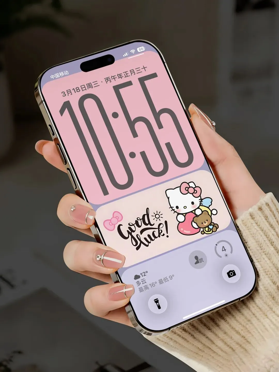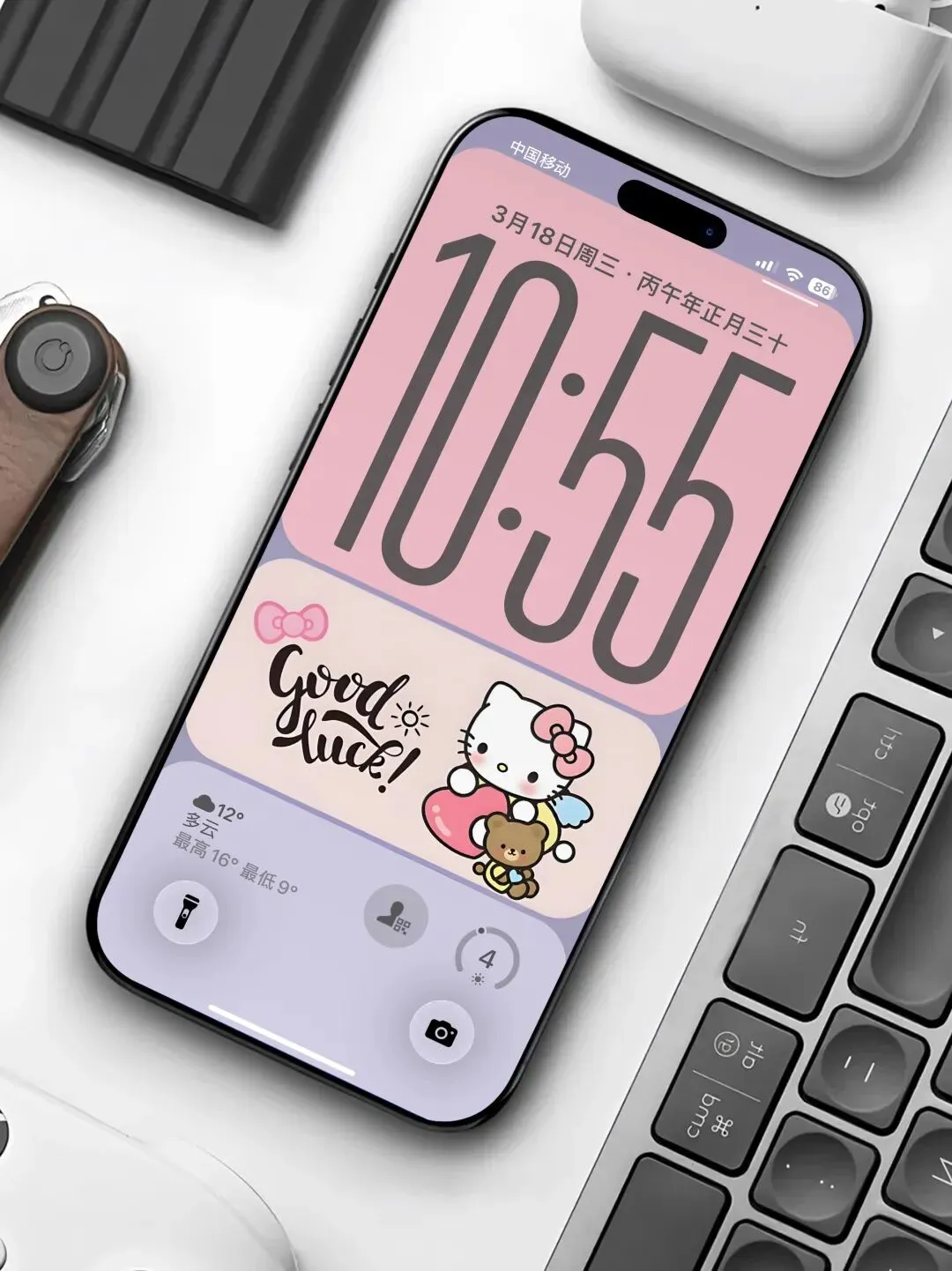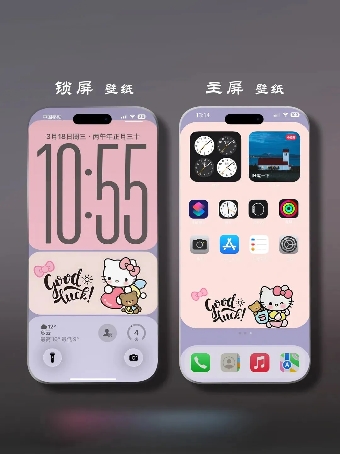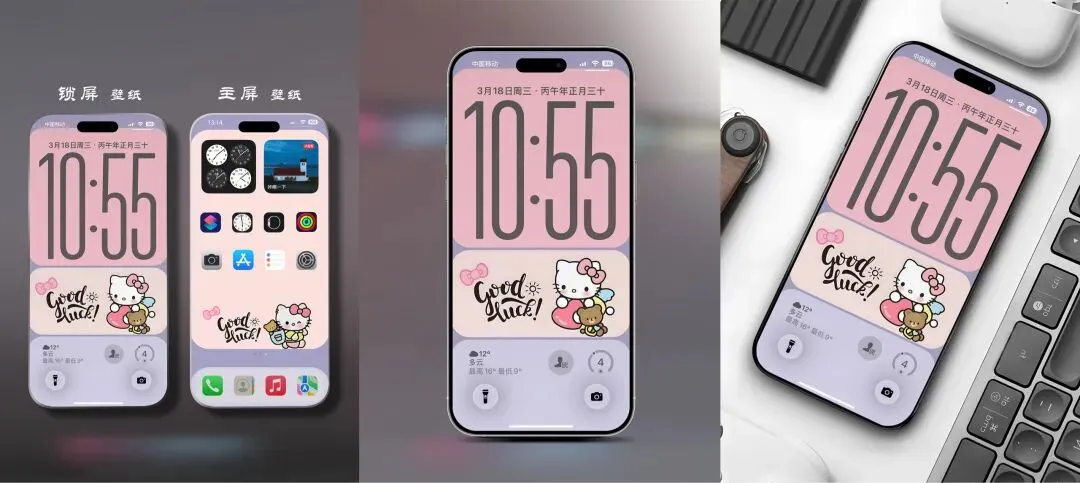 >高级简约感 少女胭脂配色凯蒂 手机壁纸