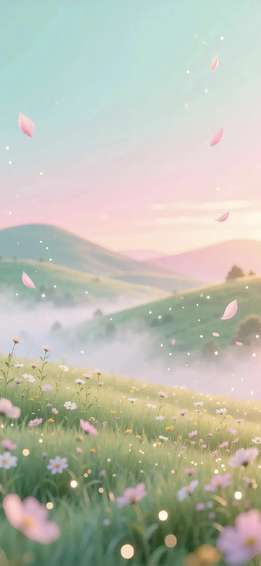 雾绕青山远花飘入梦来 简约手机壁纸
