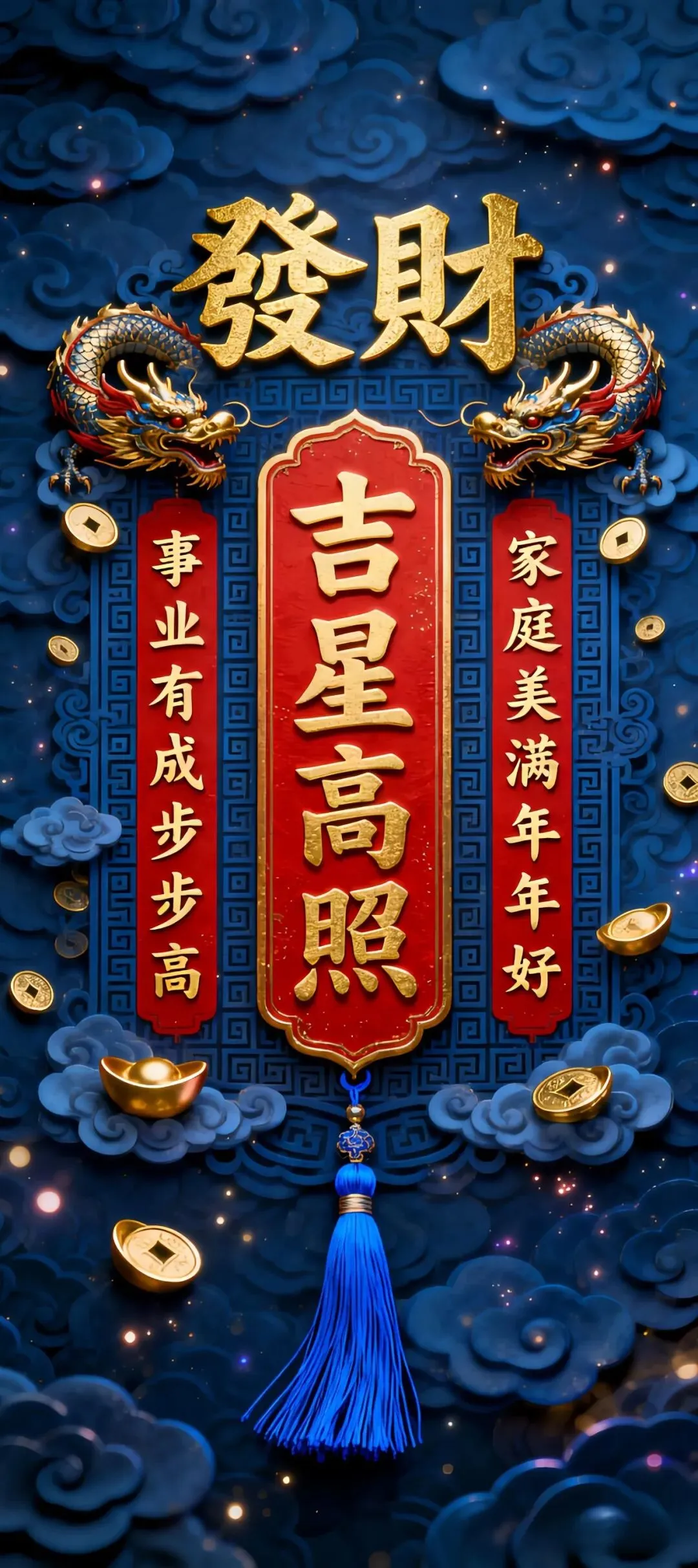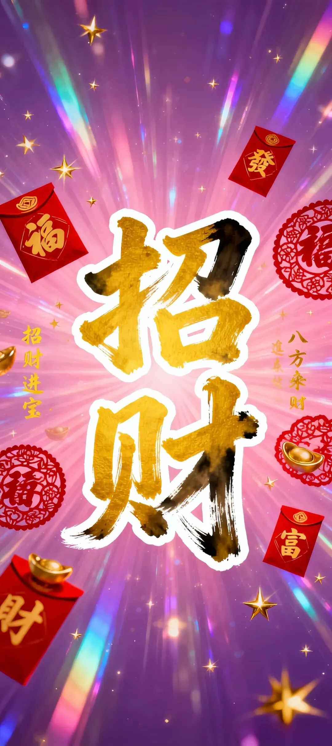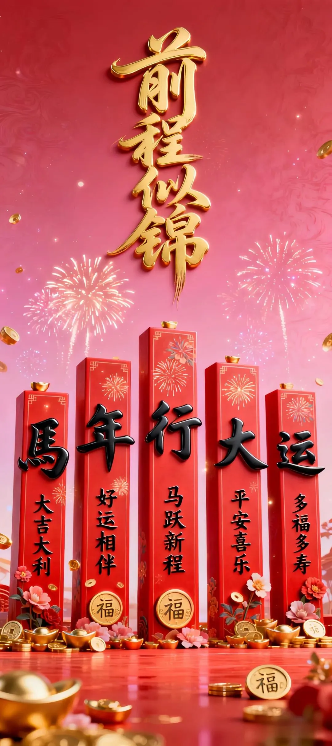 >国风吉祥手机壁纸:马年立柱、招财元宝与2026好运