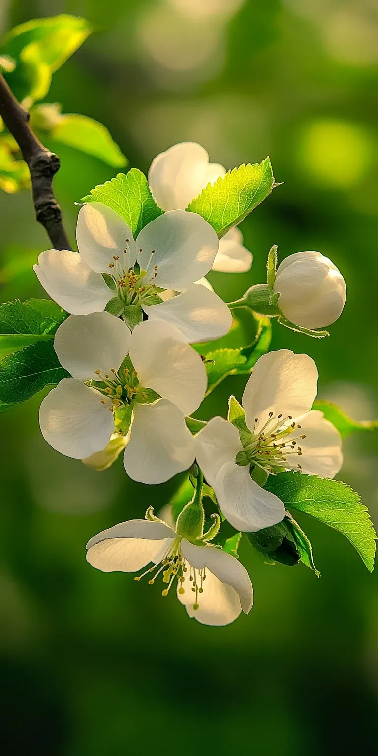 >绿叶白花,春日清新高清手机壁纸