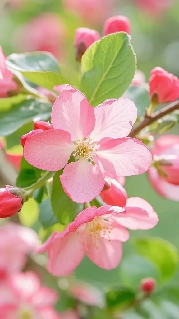 >“粉色系海棠花手机壁纸~”