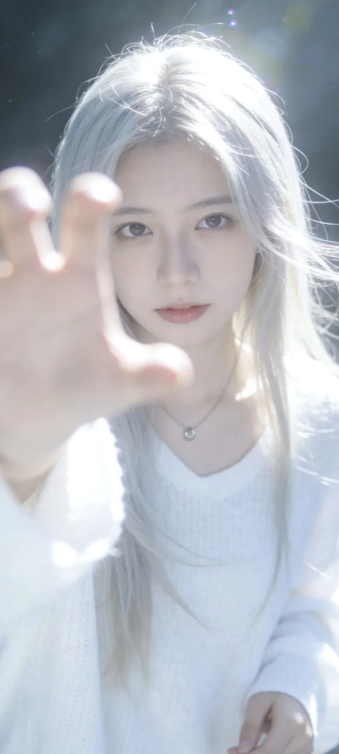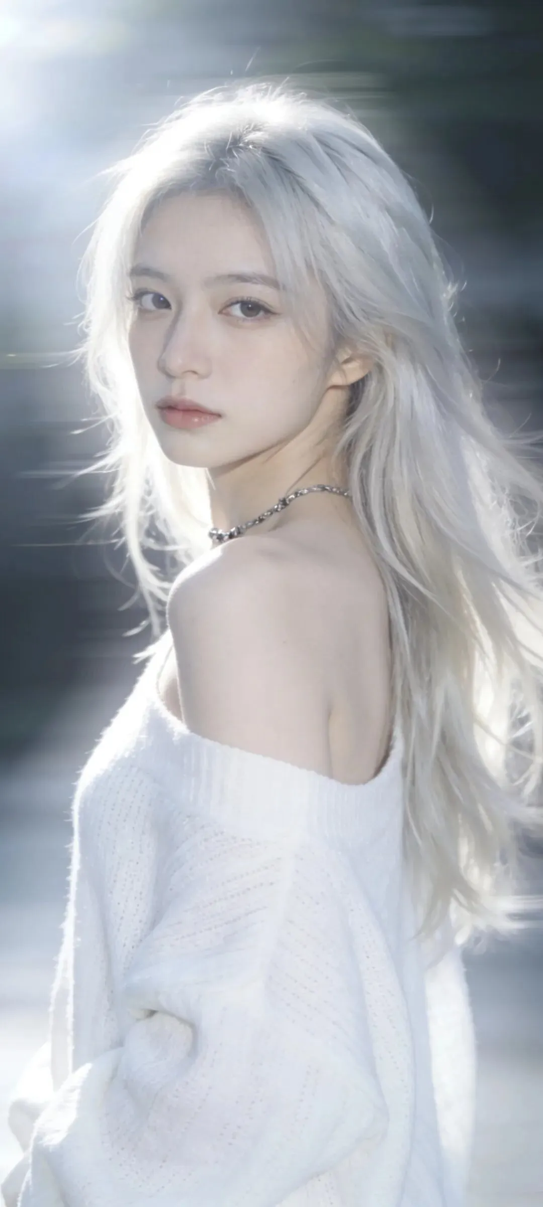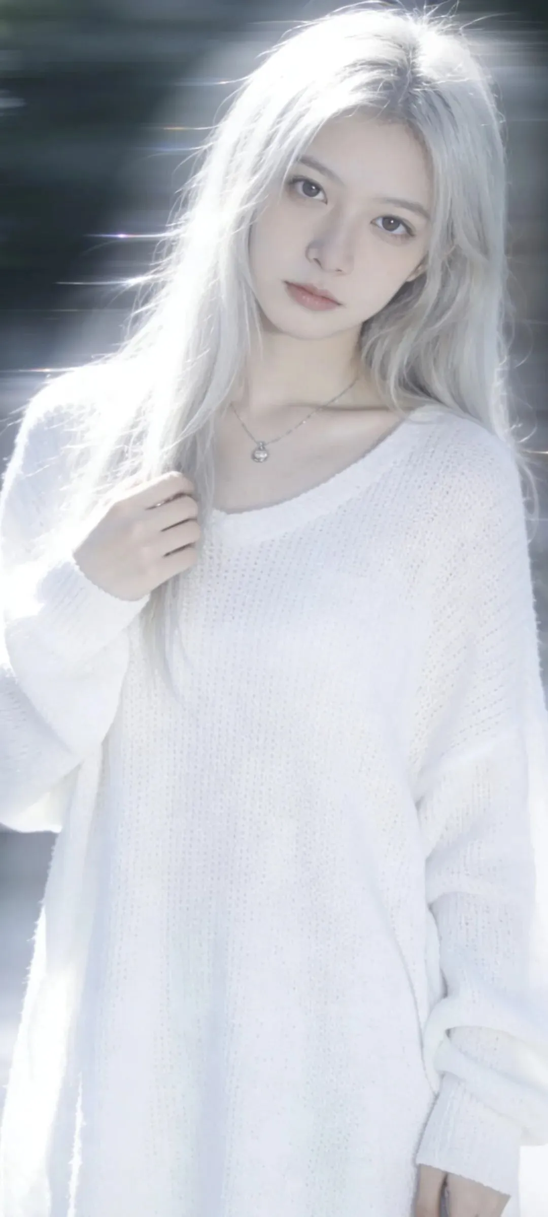 银金长发垂落,冷白皮肤透出微光。