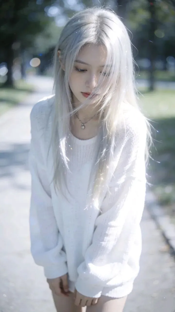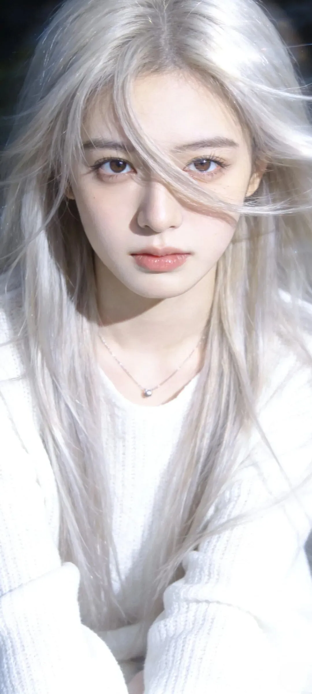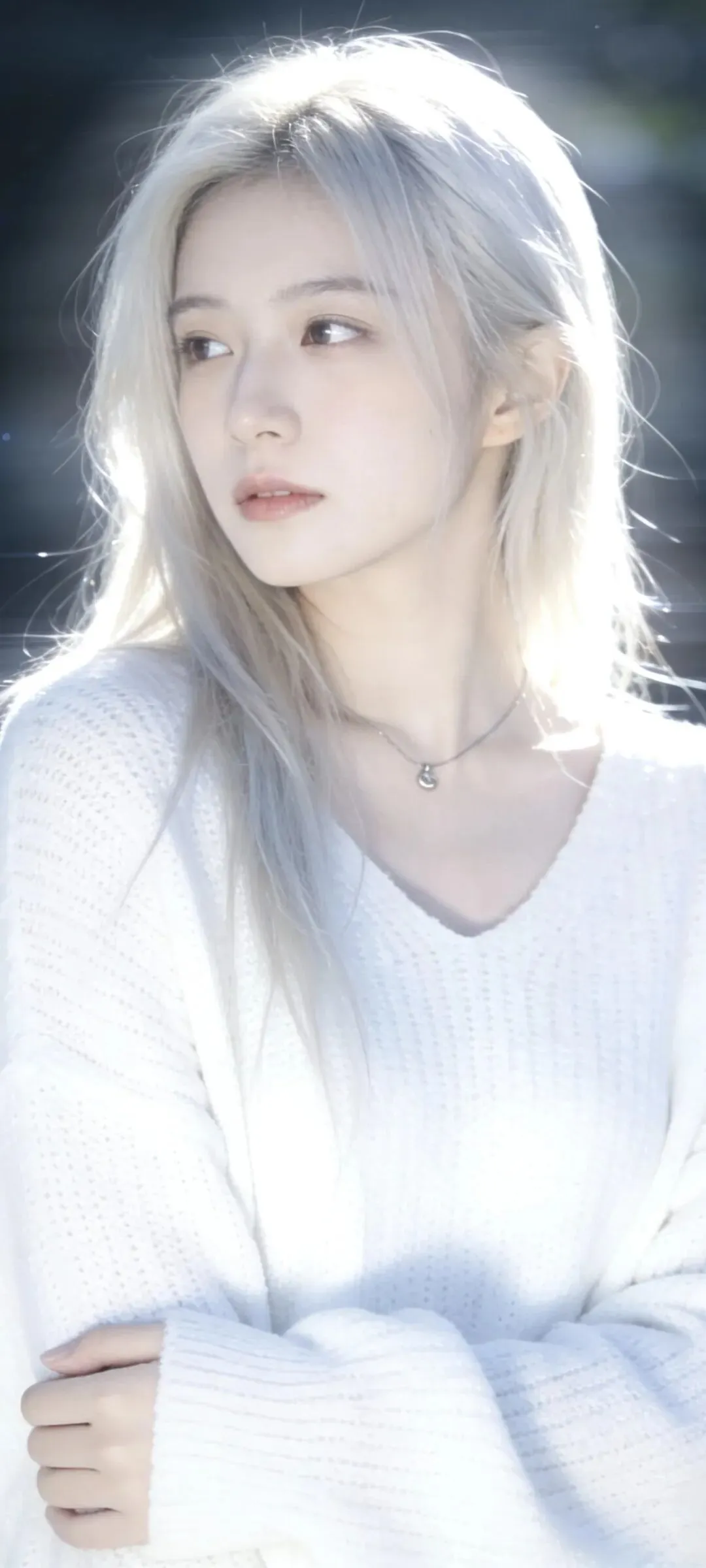 银金长发垂落,冷白皮肤透出微光。