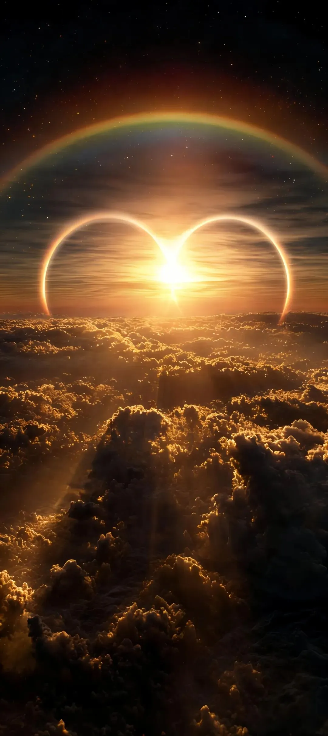 多元梦幻手机壁纸:黑黄眼眸、黑白云雾、紫瓣水珠、粉蝶结、新月星芒