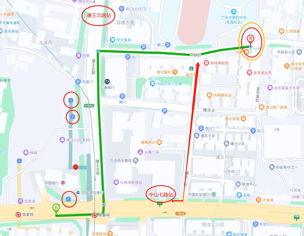 2、康王北路、中山七路站均可步行前往。(约4分钟)