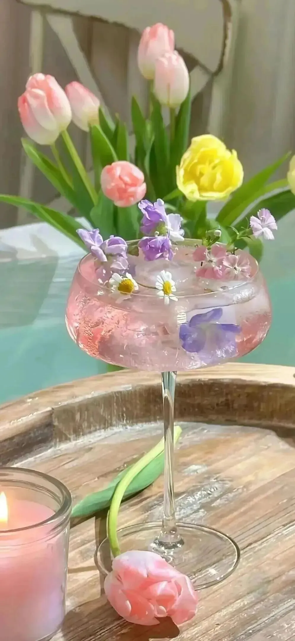 Share | 插花-蓝色纯色背景手机壁纸