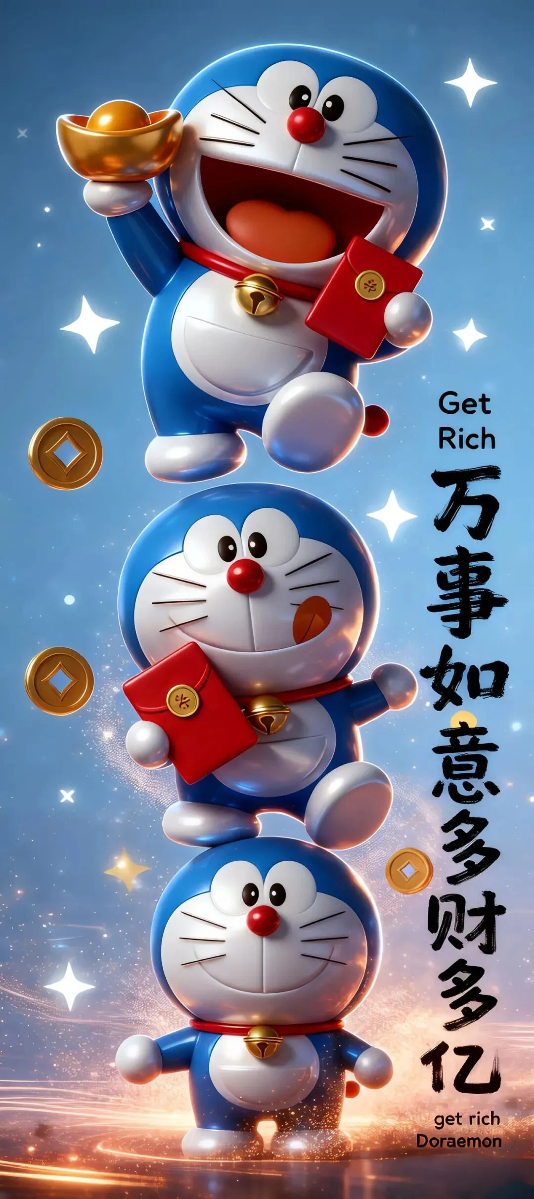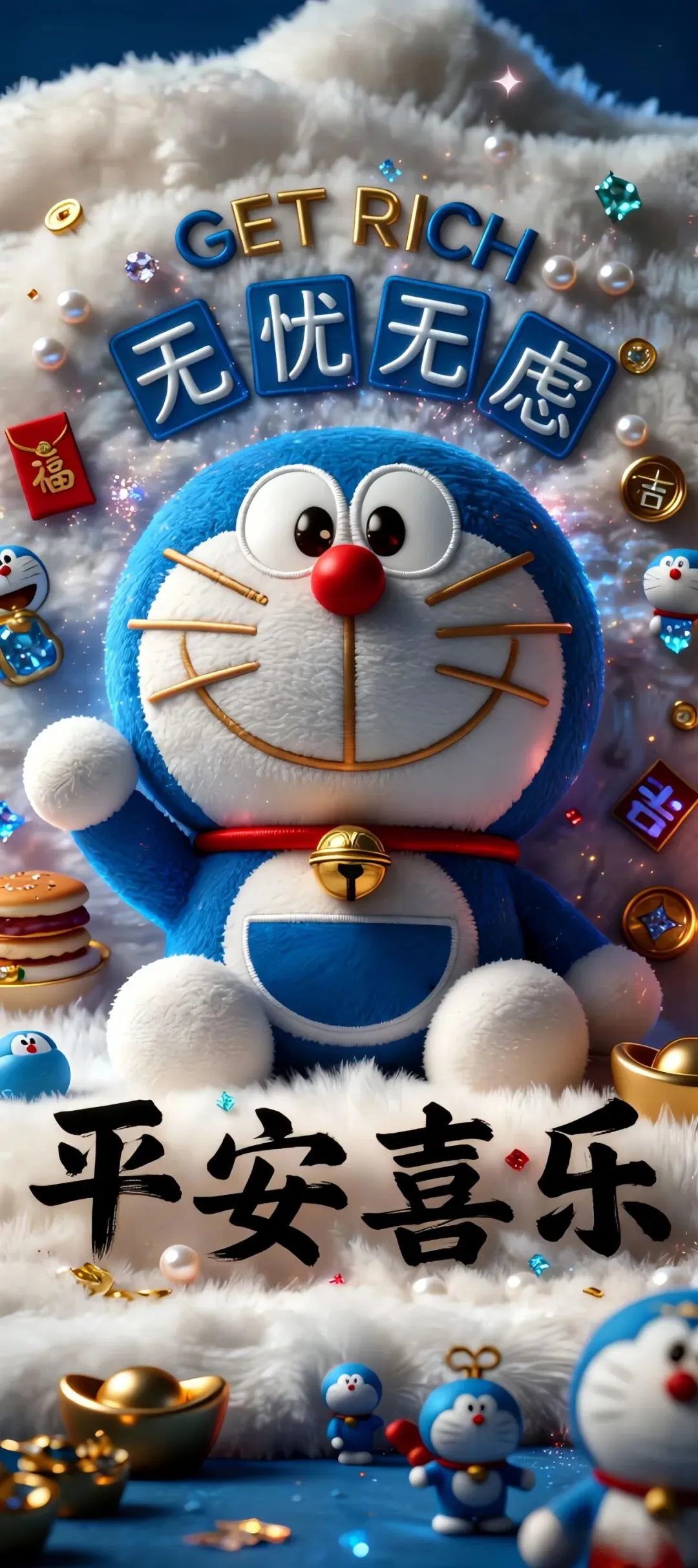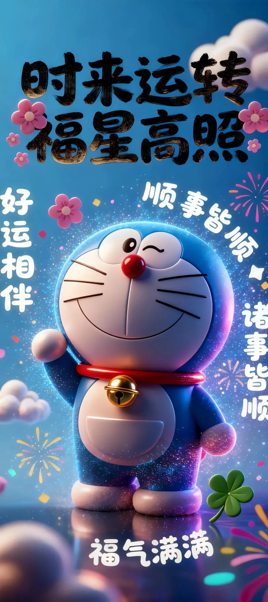 哆啦A梦多元萌态手机壁纸:从好运富足到元气满满的祝福