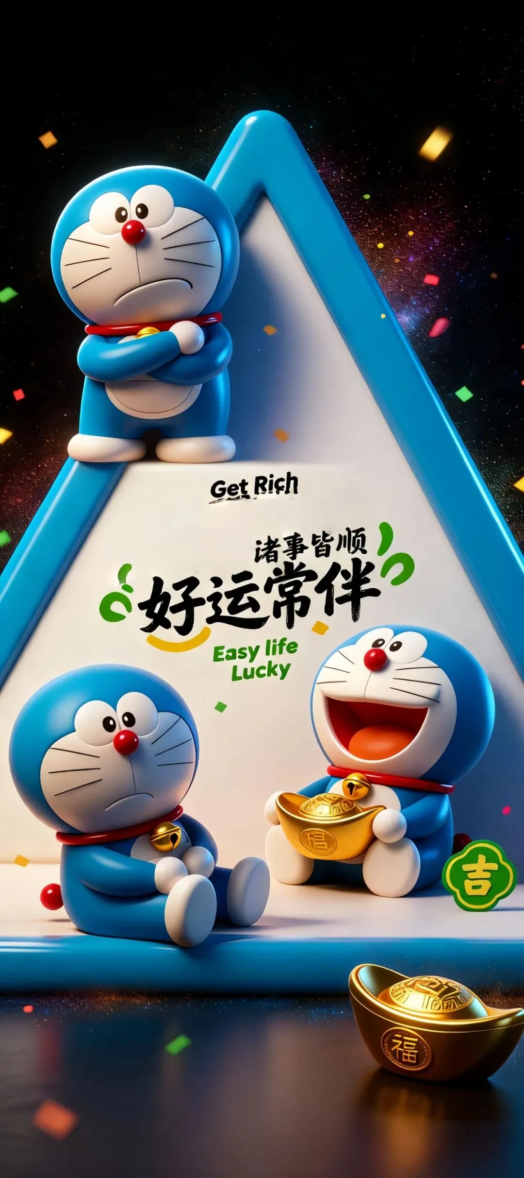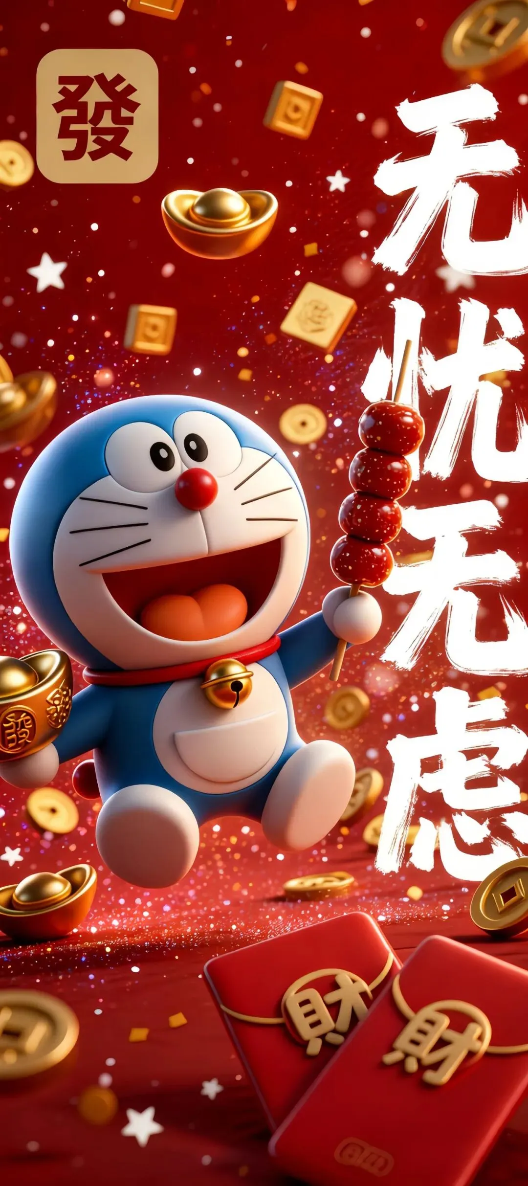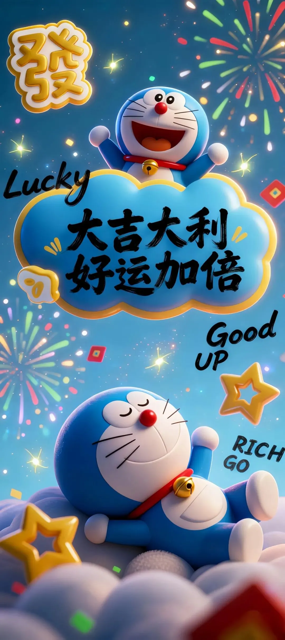 哆啦A梦多元萌态手机壁纸:从好运富足到元气满满的祝福
