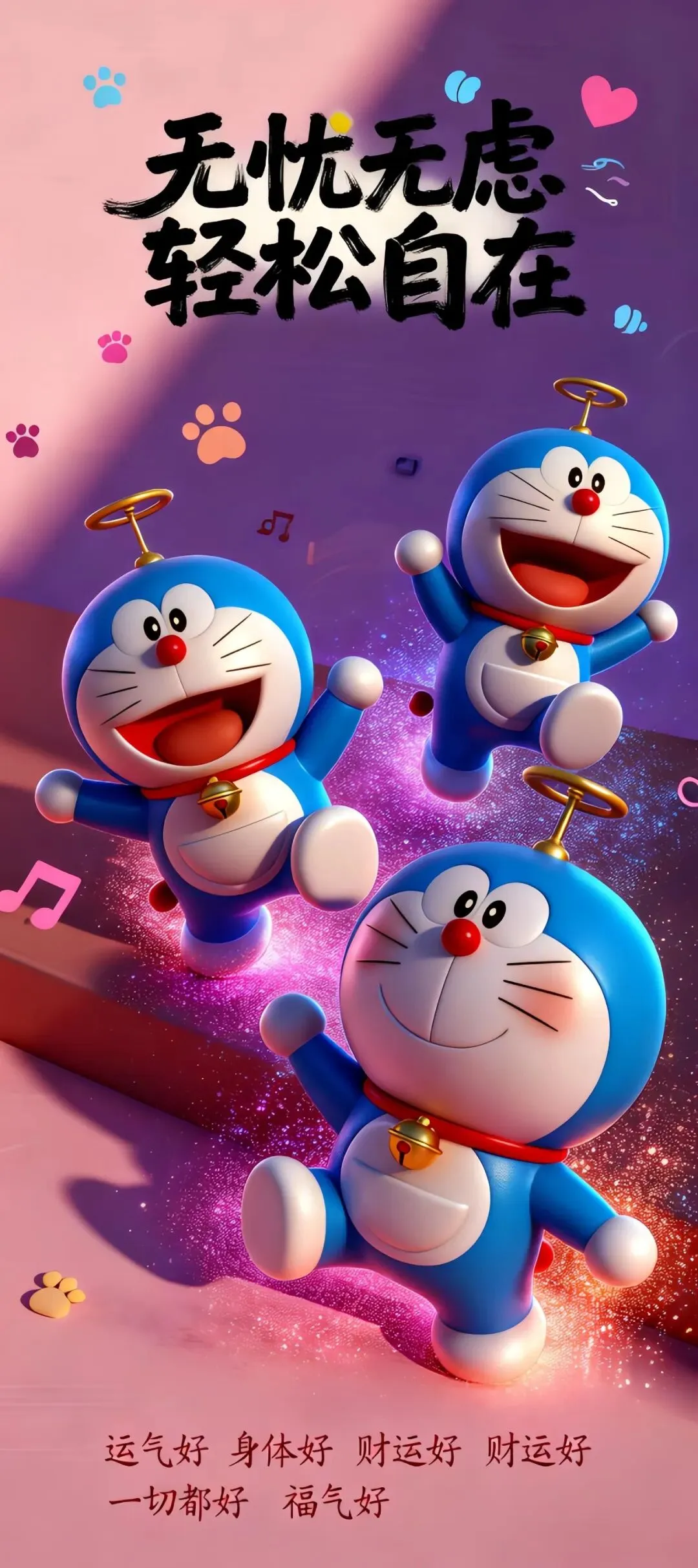 >哆啦A梦多元萌态手机壁纸:从好运富足到元气满满的祝福