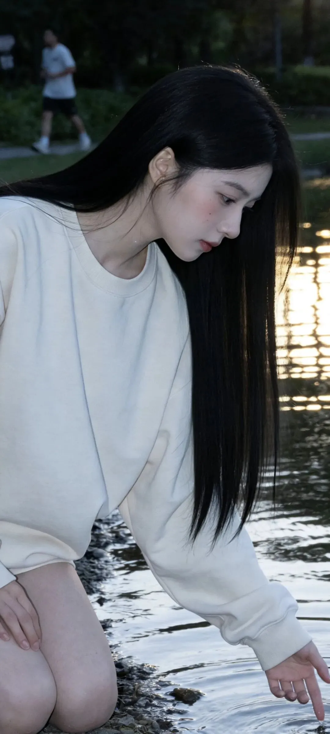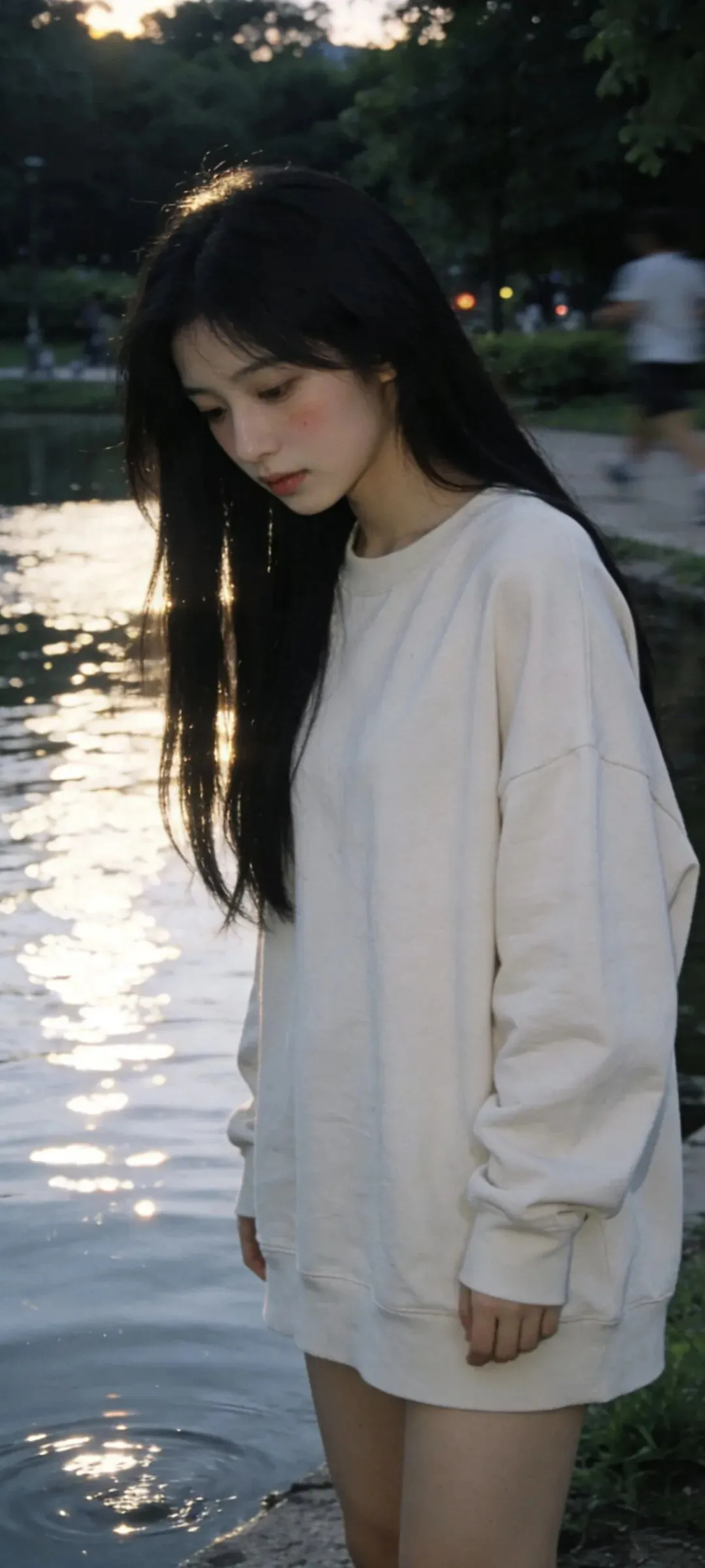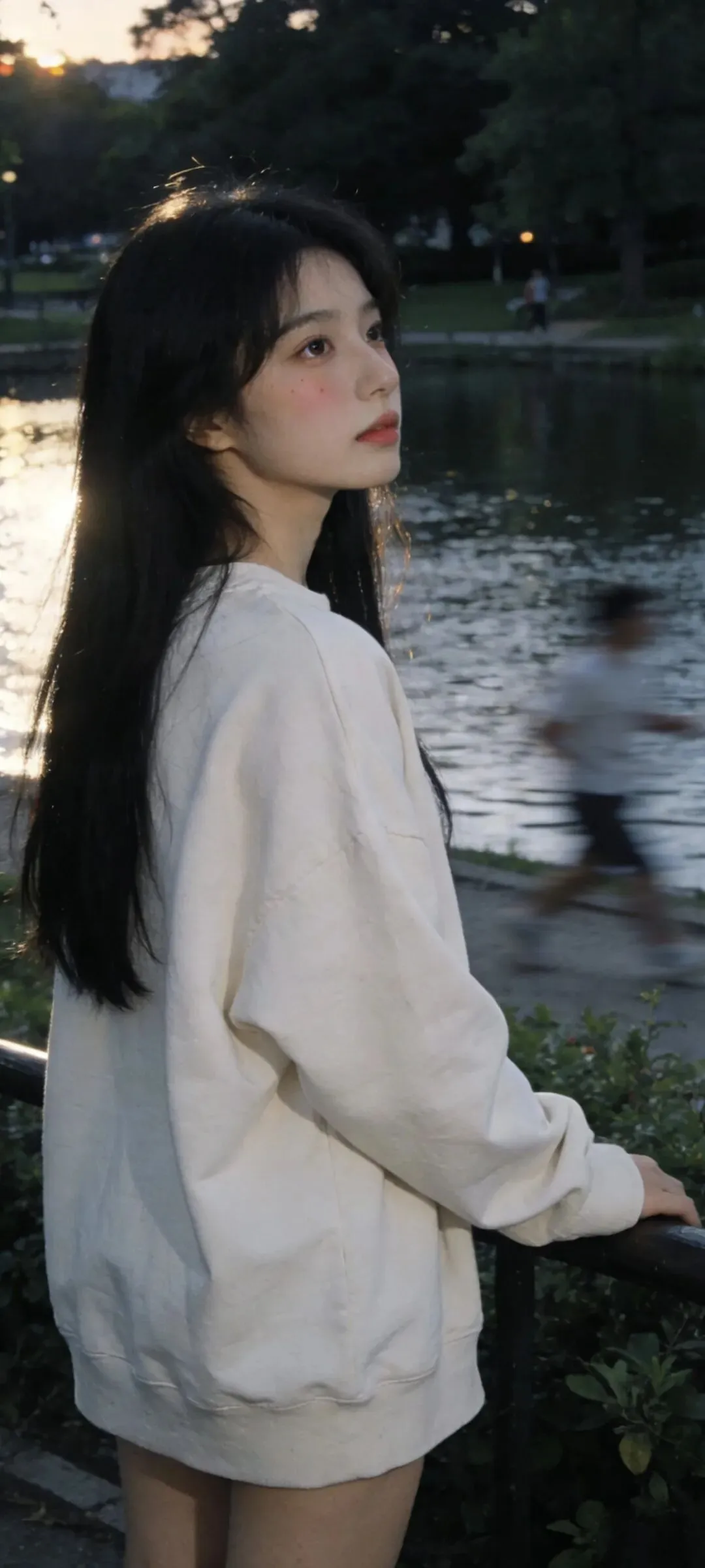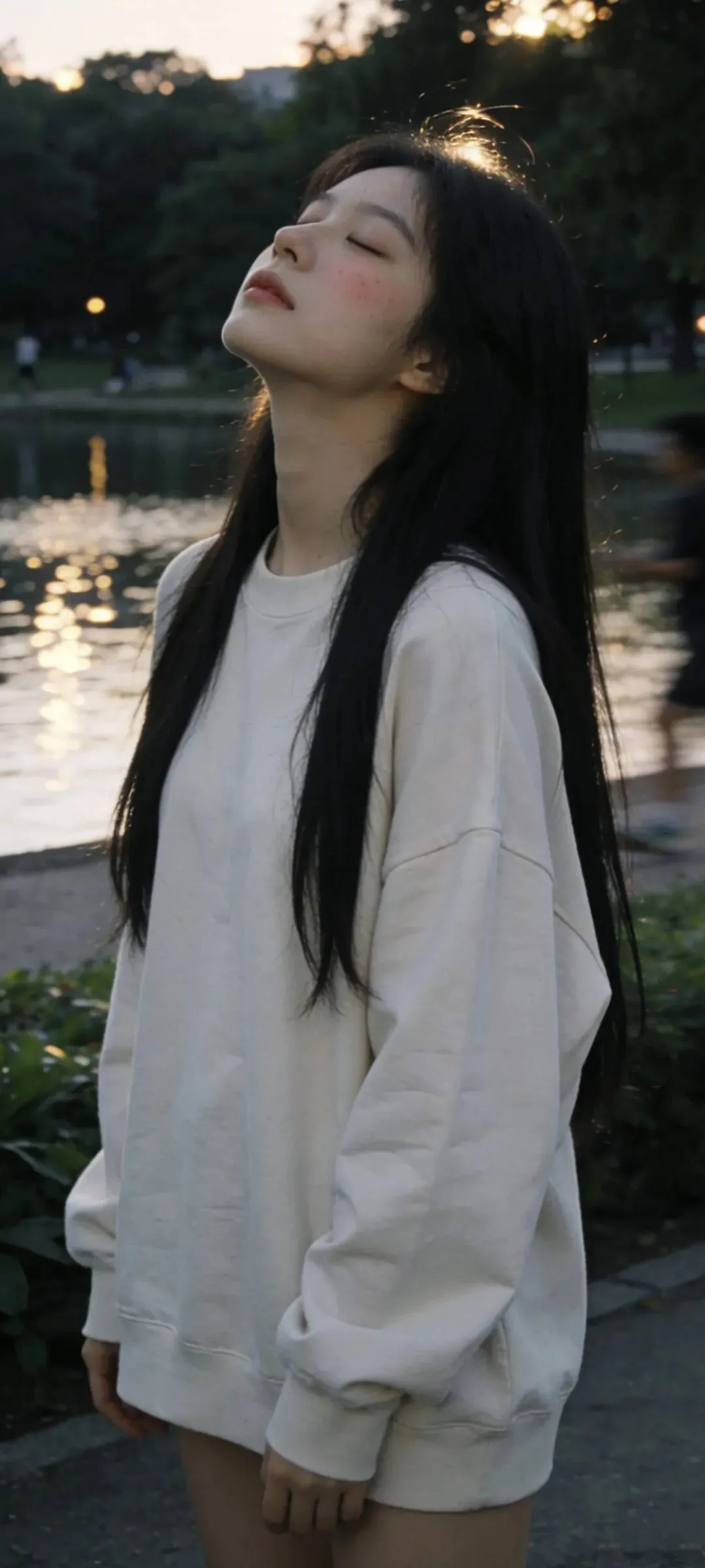 把湖面揉碎成千万片光,逆光便从发梢开始生长,每一根发丝都镶上了细细的金边