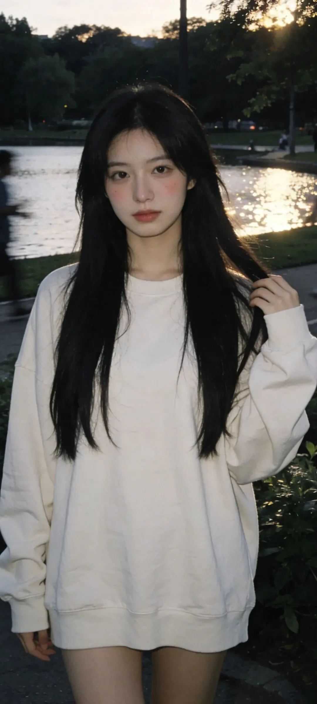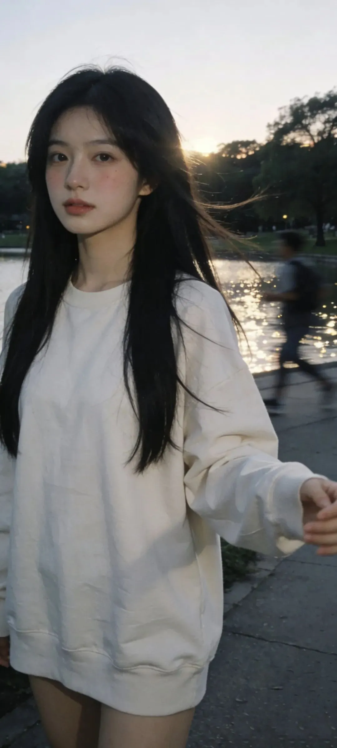伸手迎风的时候,宽大的卫衣袖口微微鼓起,像装满了整个黄昏。
