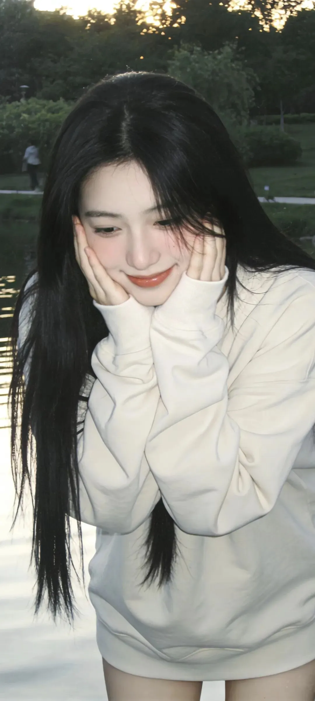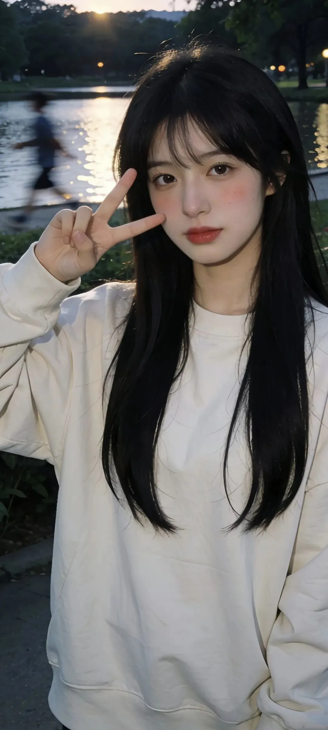 她比耶贴脸时,指尖的弧度刚好接住一缕光;