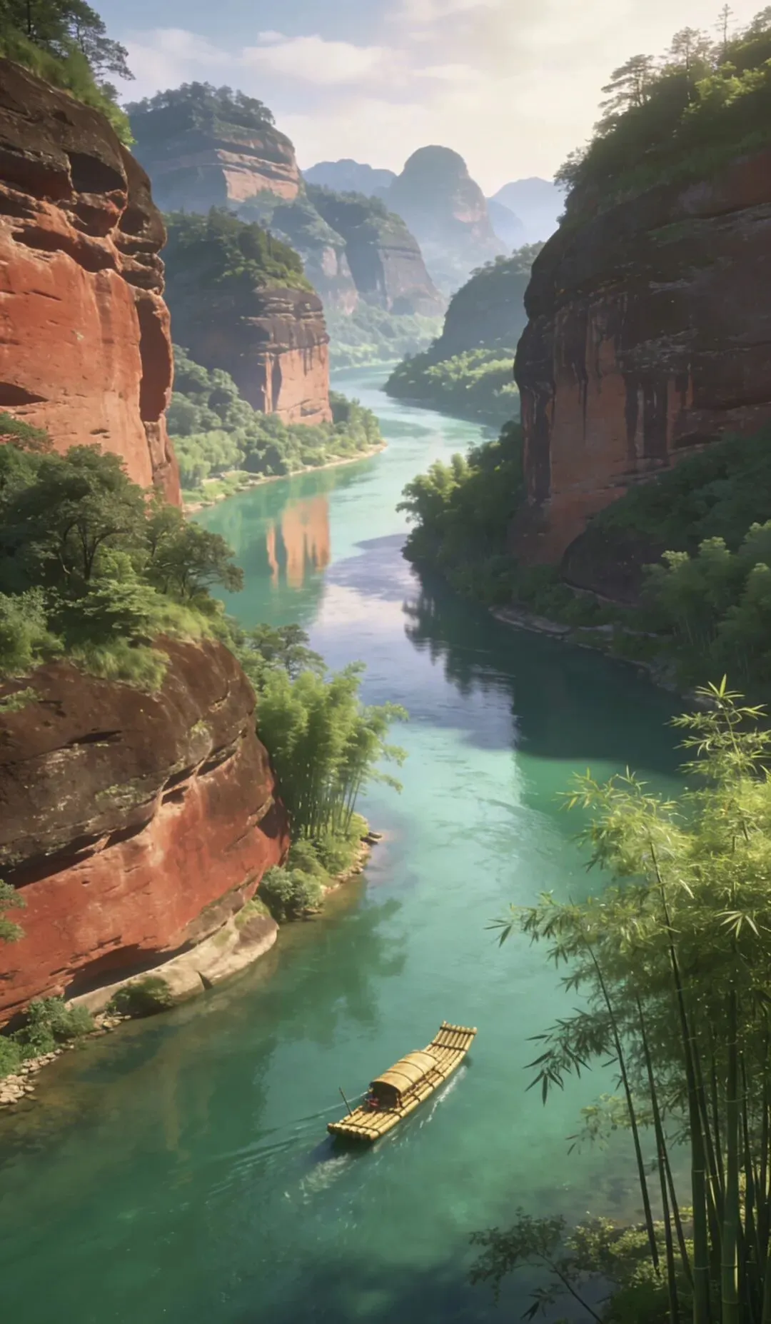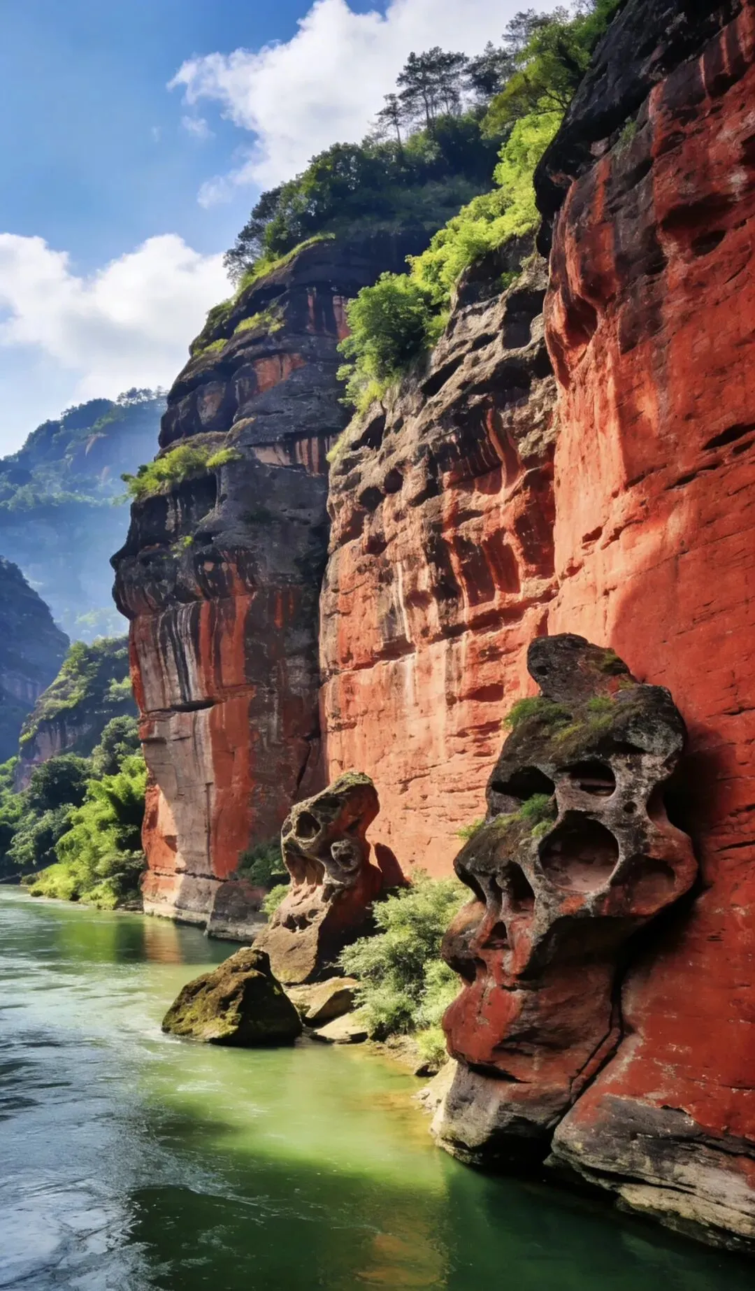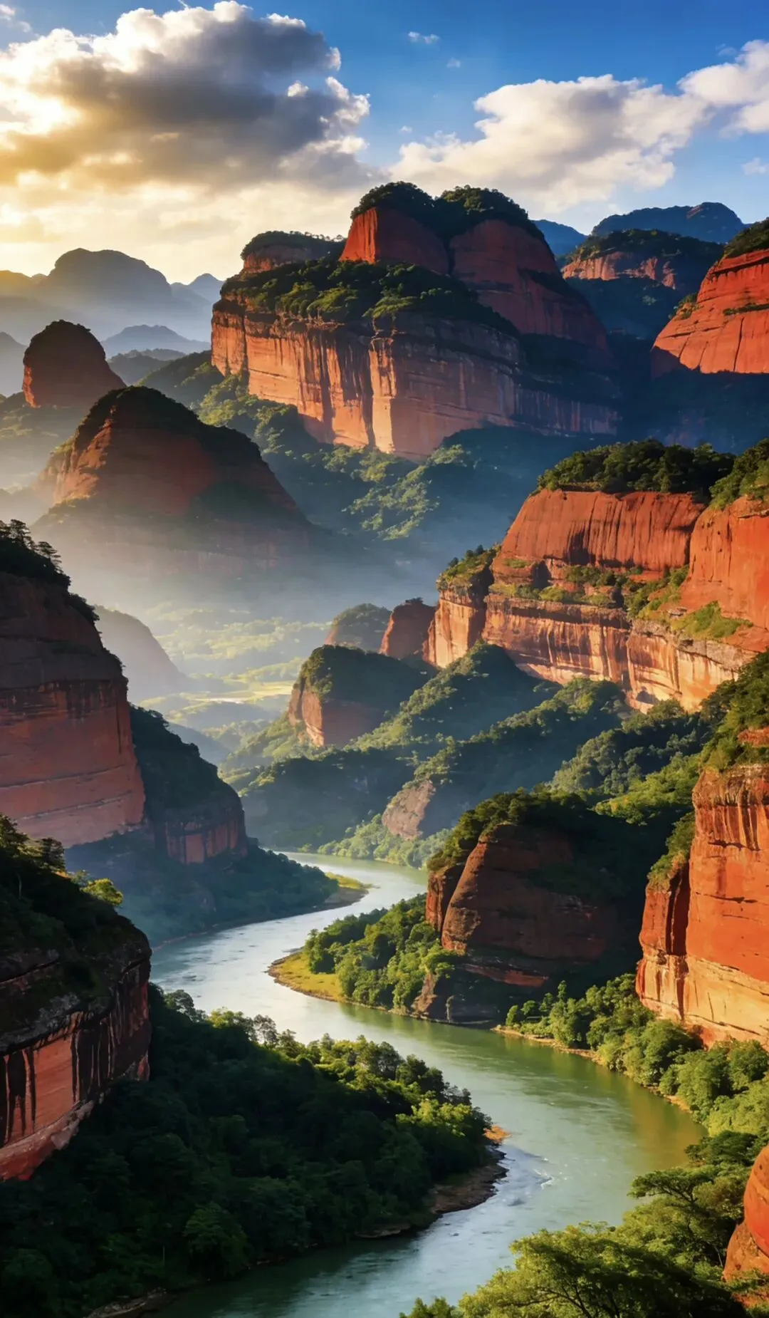 广东韶关丹霞山,世界自然遗产,丹霞地貌命名地。赤壁丹崖气势磅礴,奇峰怪石千姿百态,阳元石与阴元石惟妙惟肖,锦江碧波环绕群山。一步一景,丹山碧水,尽显大自然鬼斧神工。