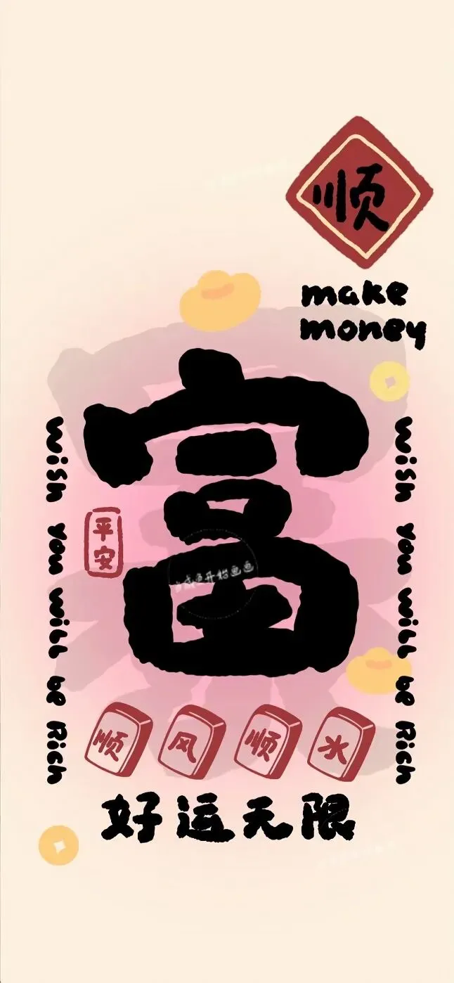 手机壁纸|发财文字壁纸啥都顺