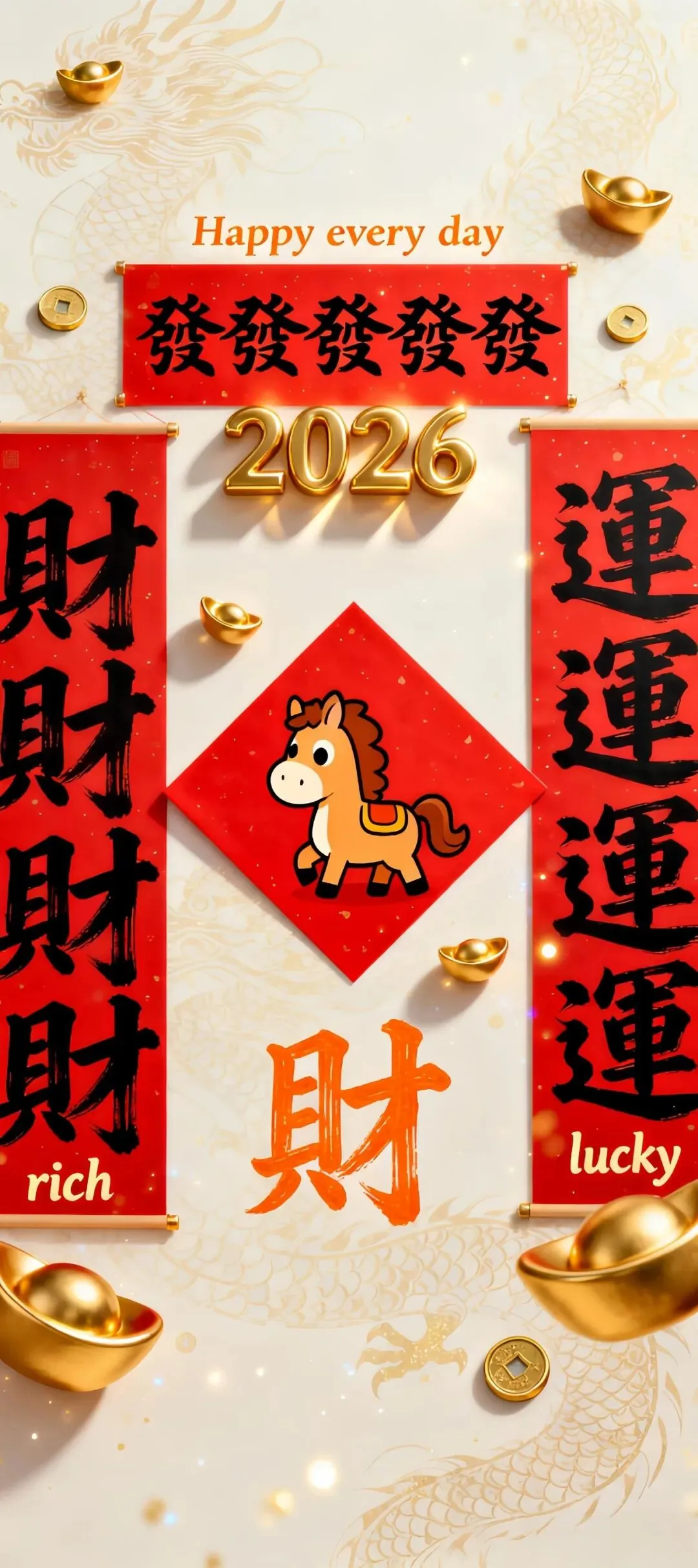 中式吉祥手机壁纸:福禄双全、财神招财与诸事皆顺、2026萌马财运