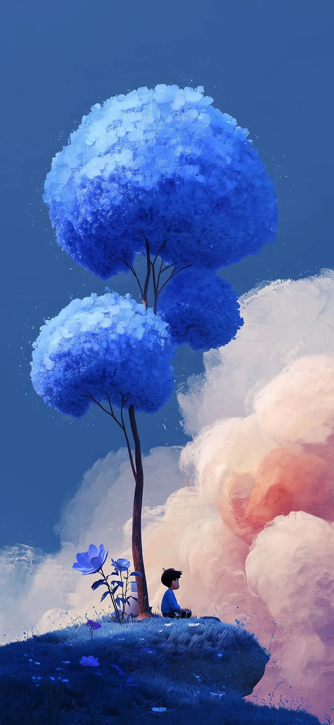 夜染蓝紫草影携花赴晚风 简约手机壁纸