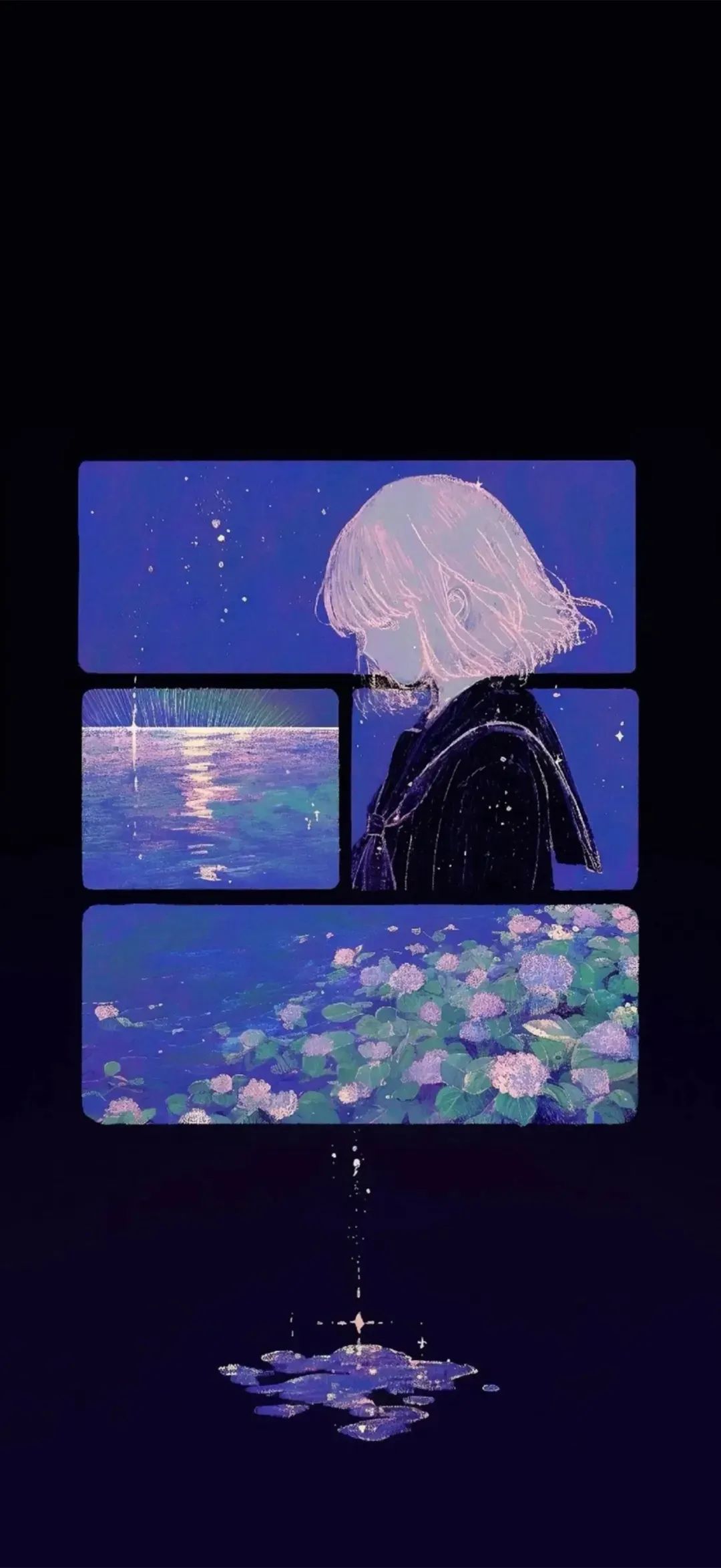 夜染蓝紫草影携花赴晚风 简约手机壁纸