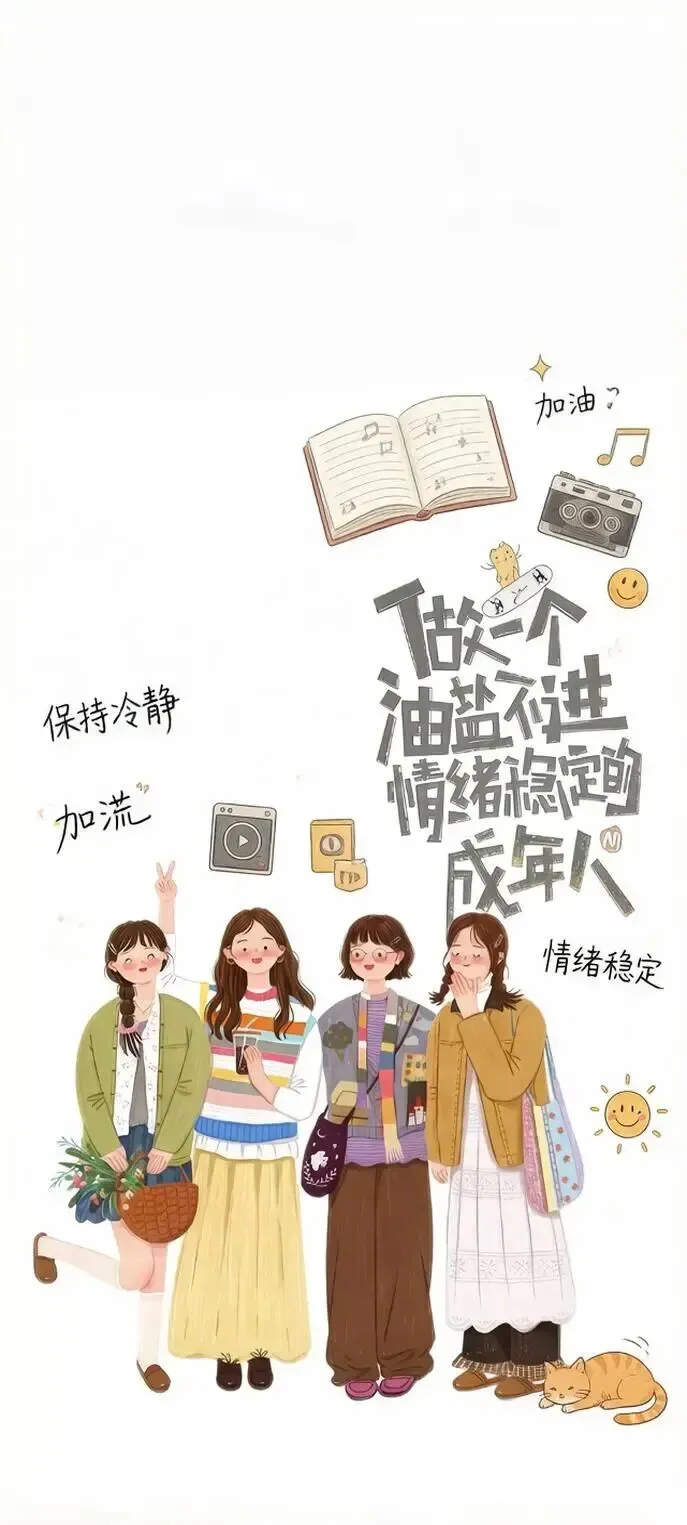 小新一家治愈文字手机壁纸