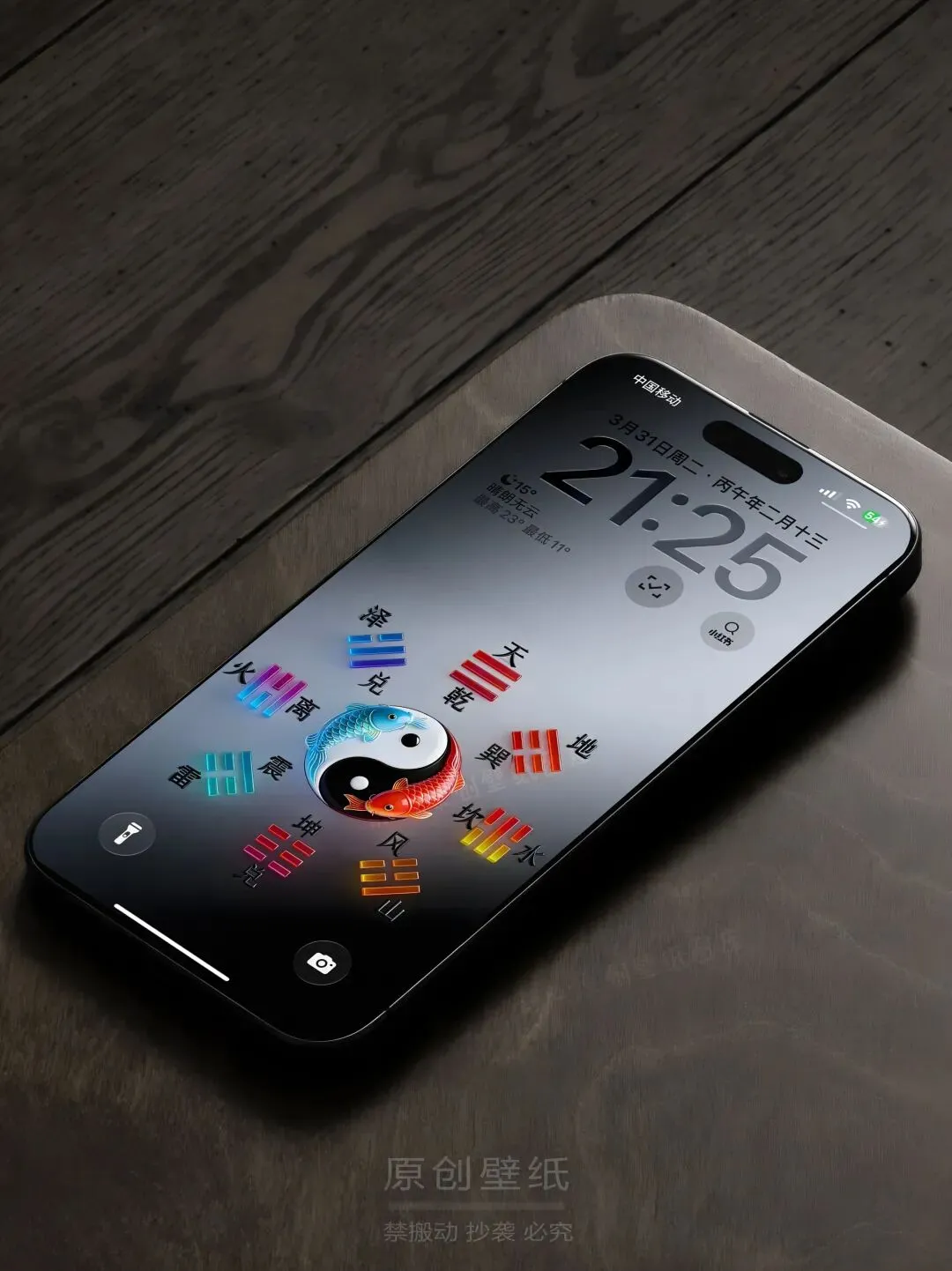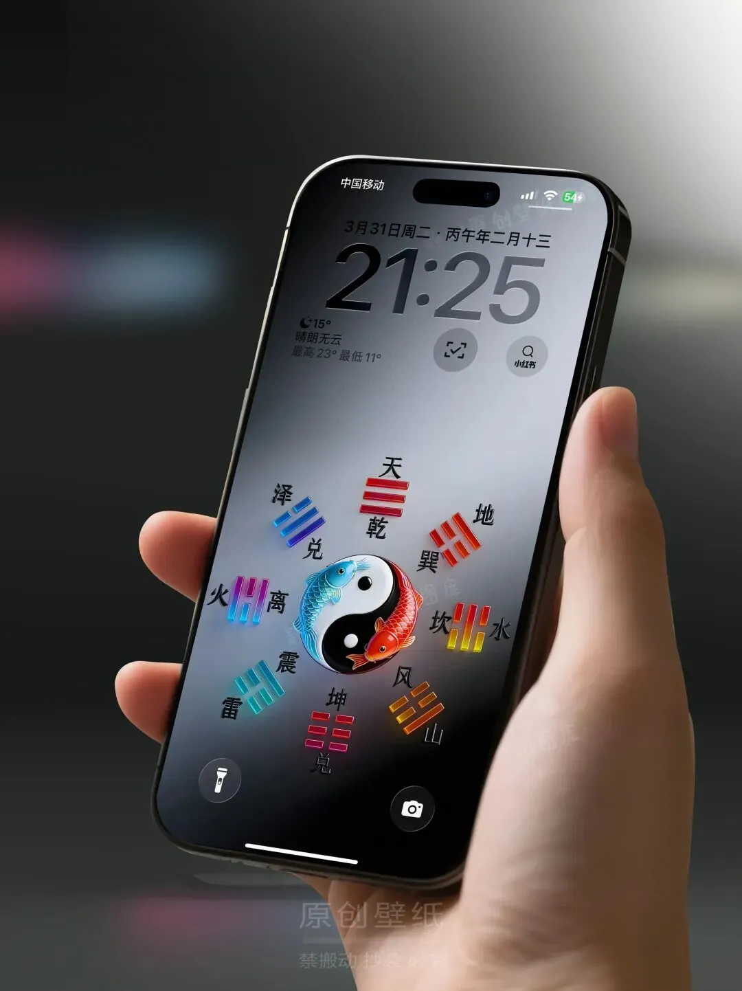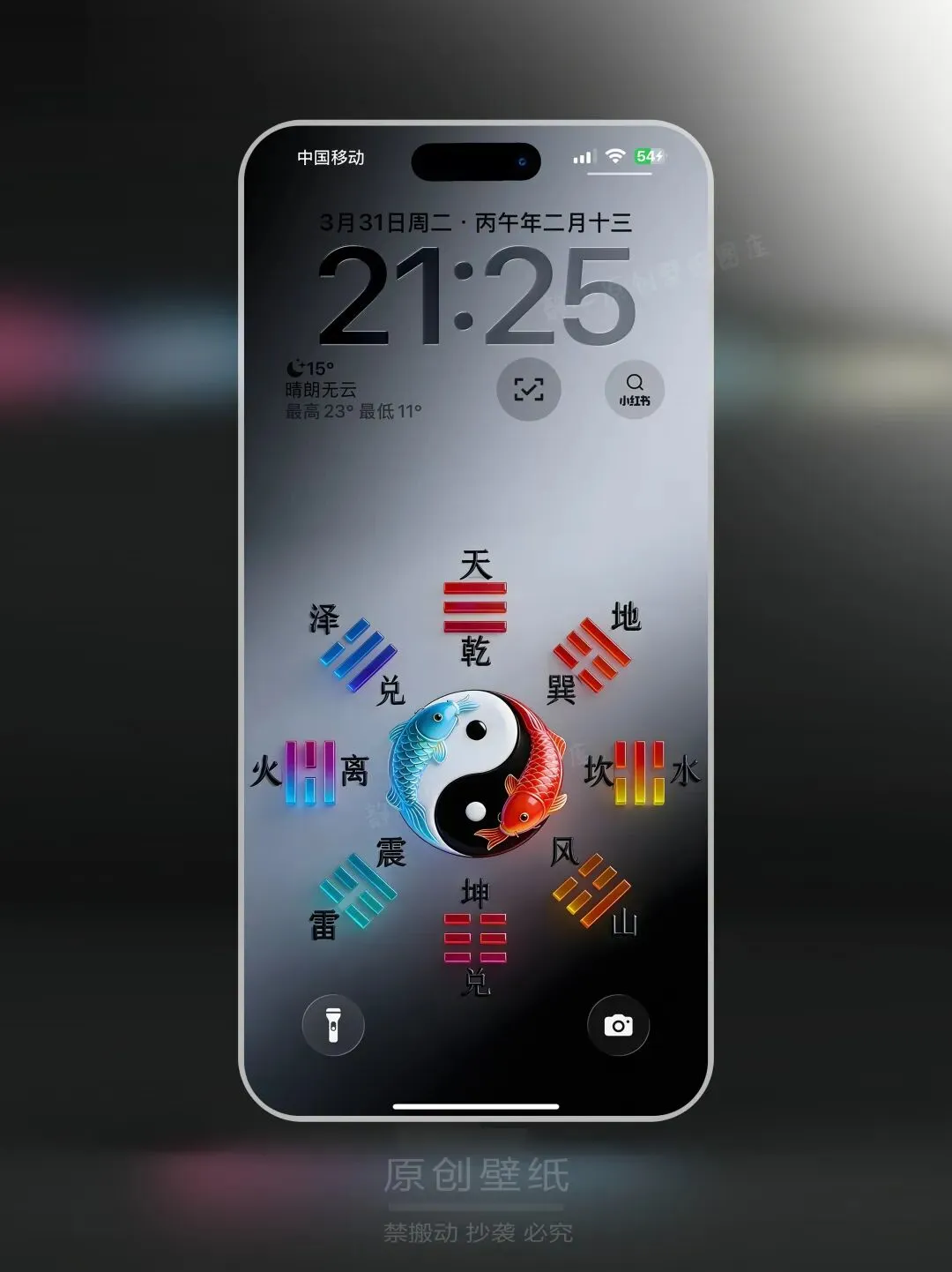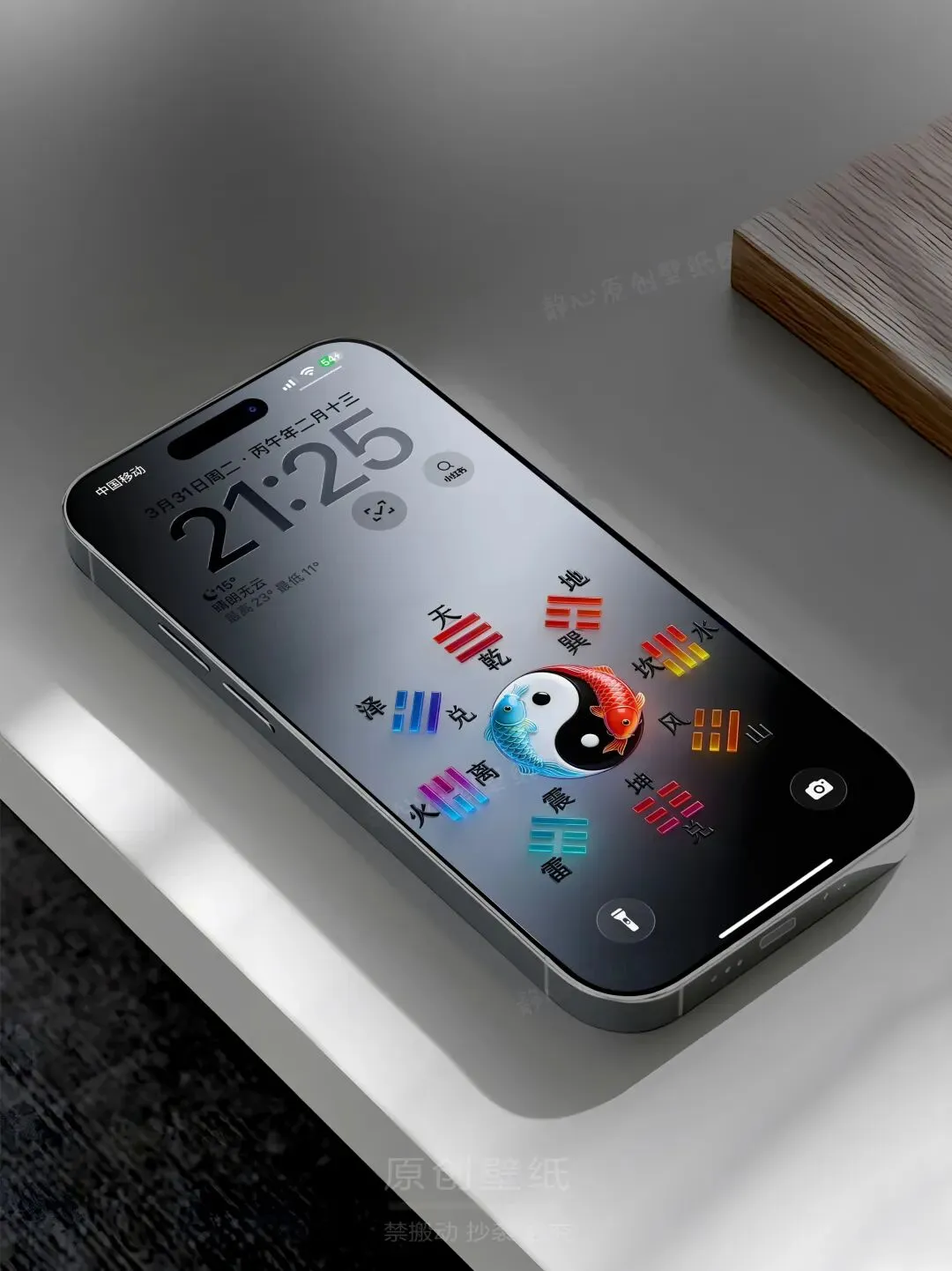 色彩立体太极八卦方位图 高级感手机壁纸