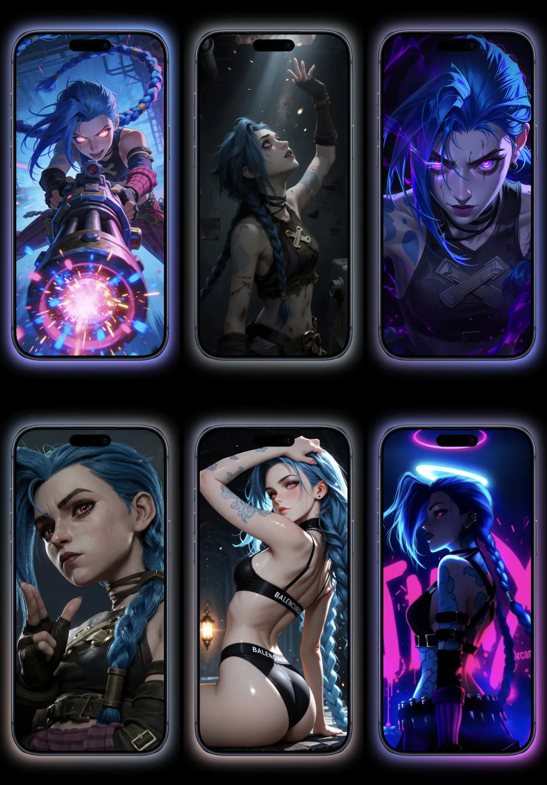 今天挖到一组英雄联盟玩家狂喜的金克丝壁纸,全是蓝发双马尾的暴走萝莉,每张都把疯批美人的氛围感拉满。