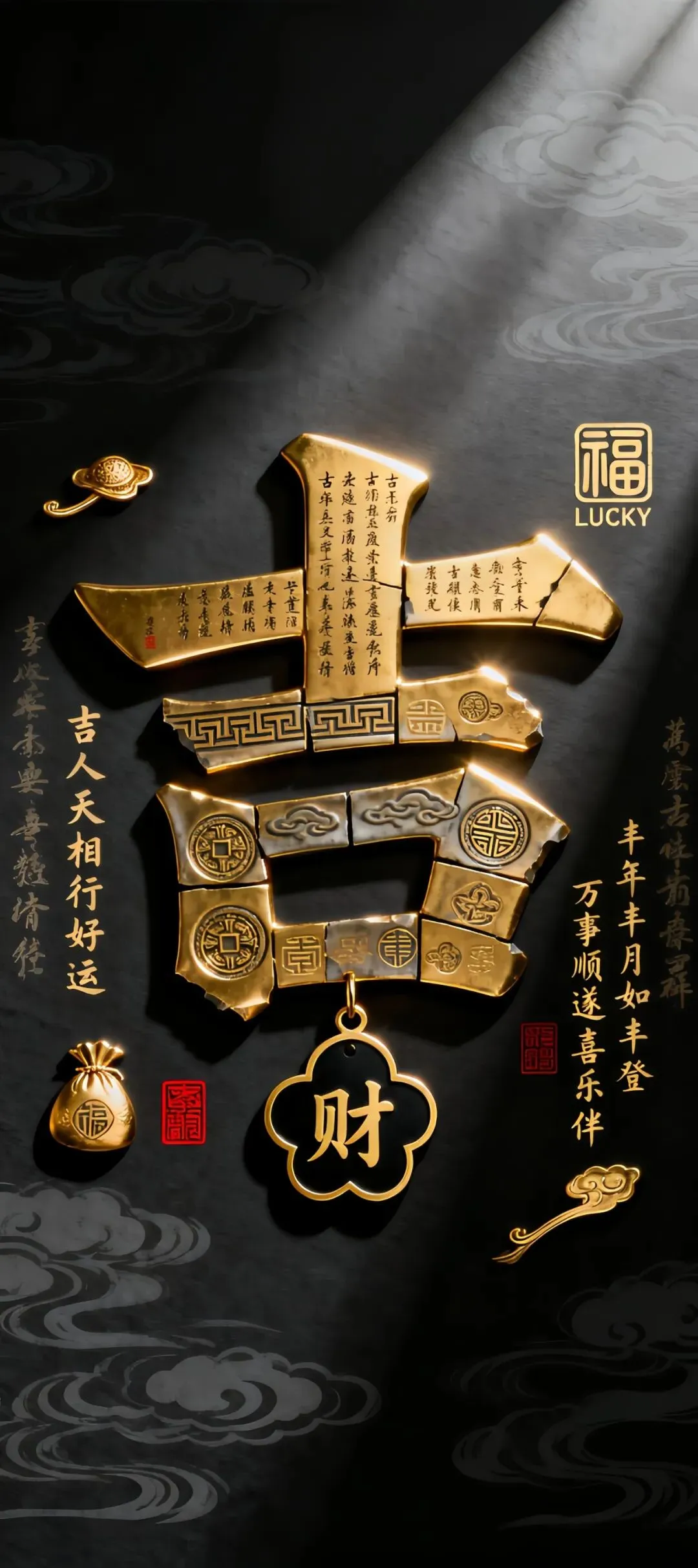 多元风格手机壁纸:中式山水、空灵氛围、金色牌匾与古风“吉”字
