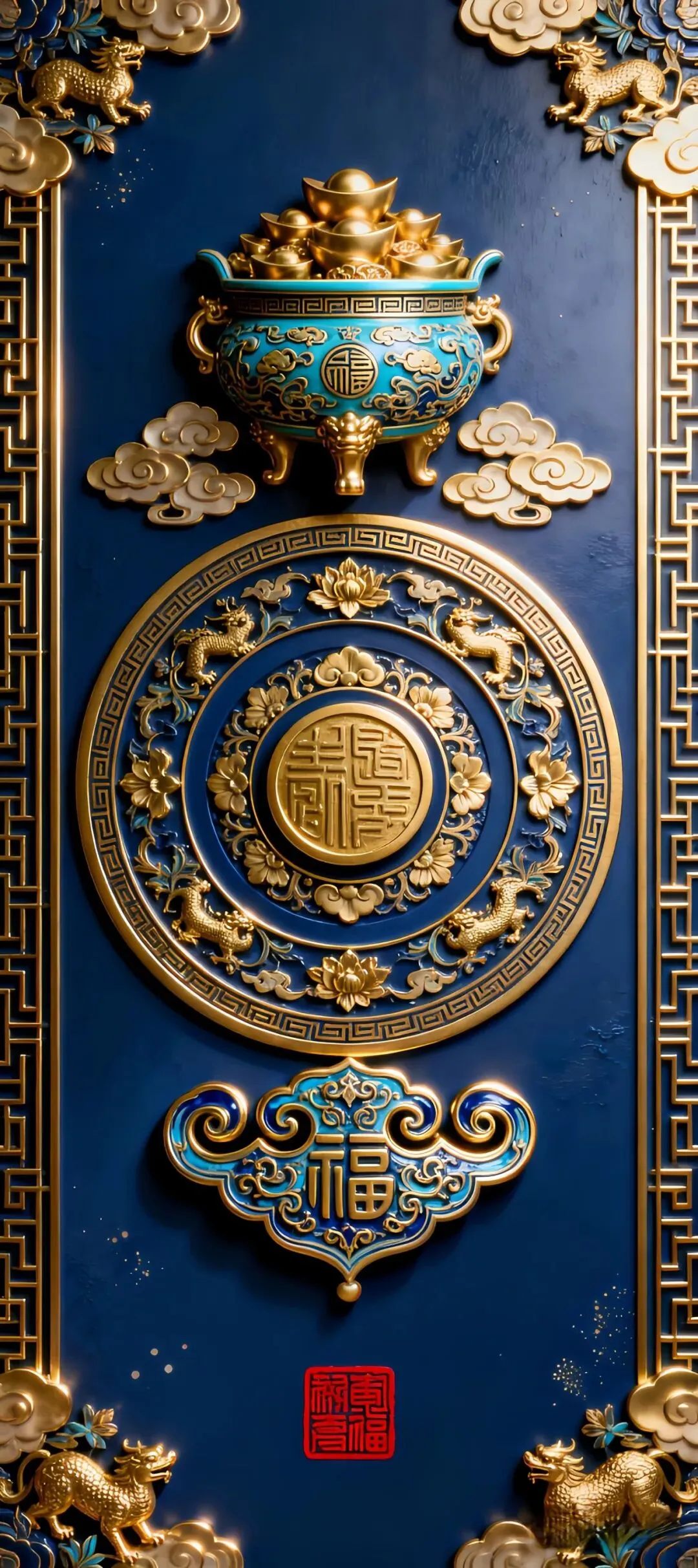 >多元风格手机壁纸:中式山水、空灵氛围、金色牌匾与古风“吉”字