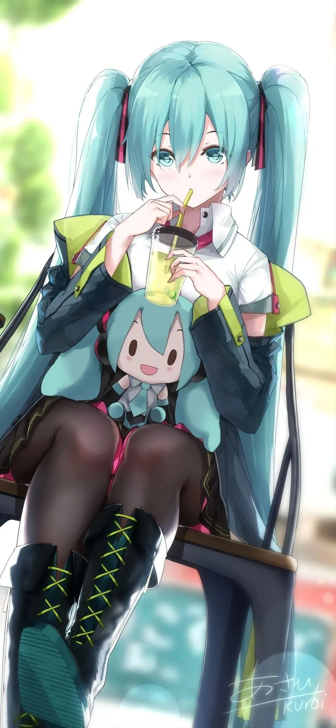 黑粉配色治愈卡通手机壁纸