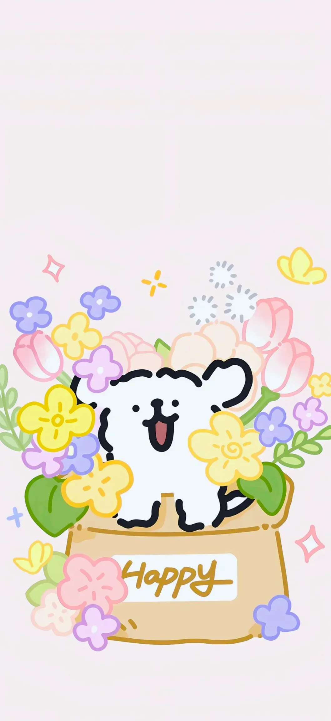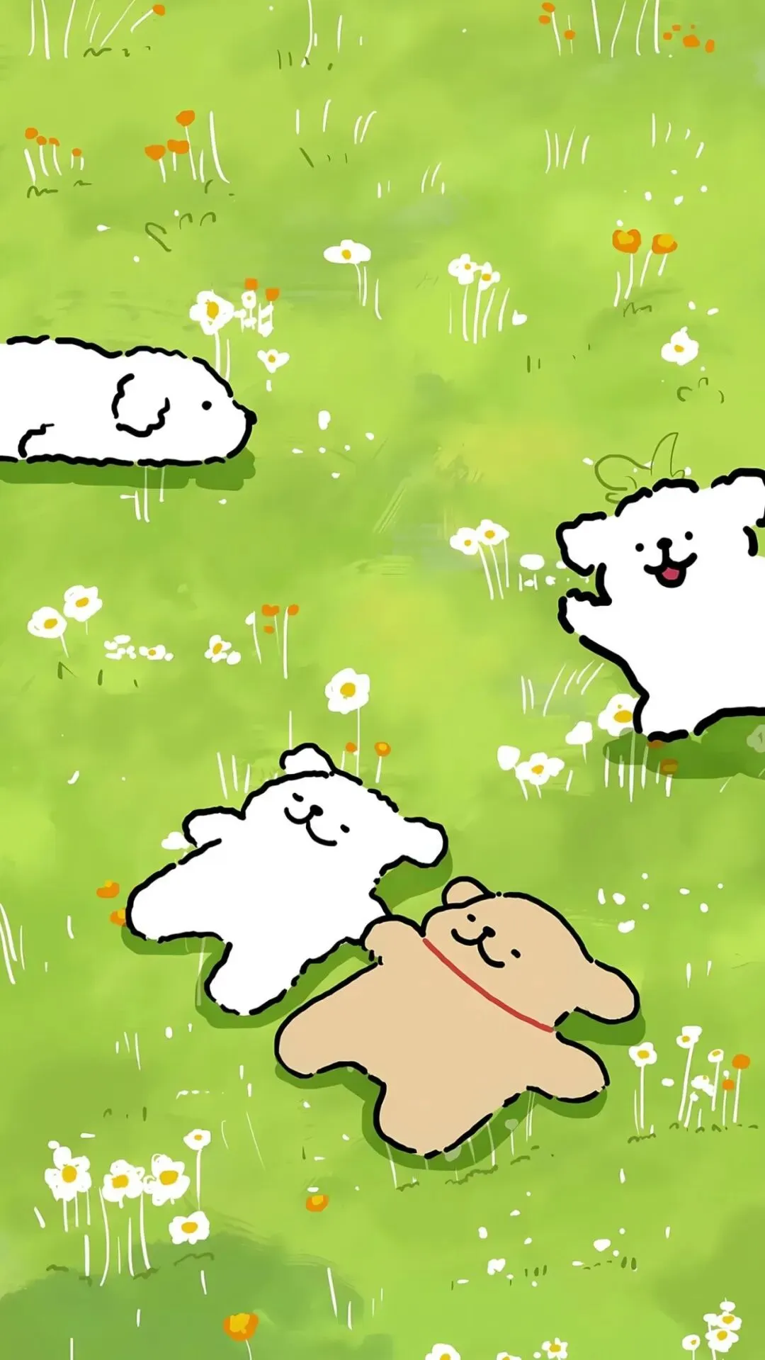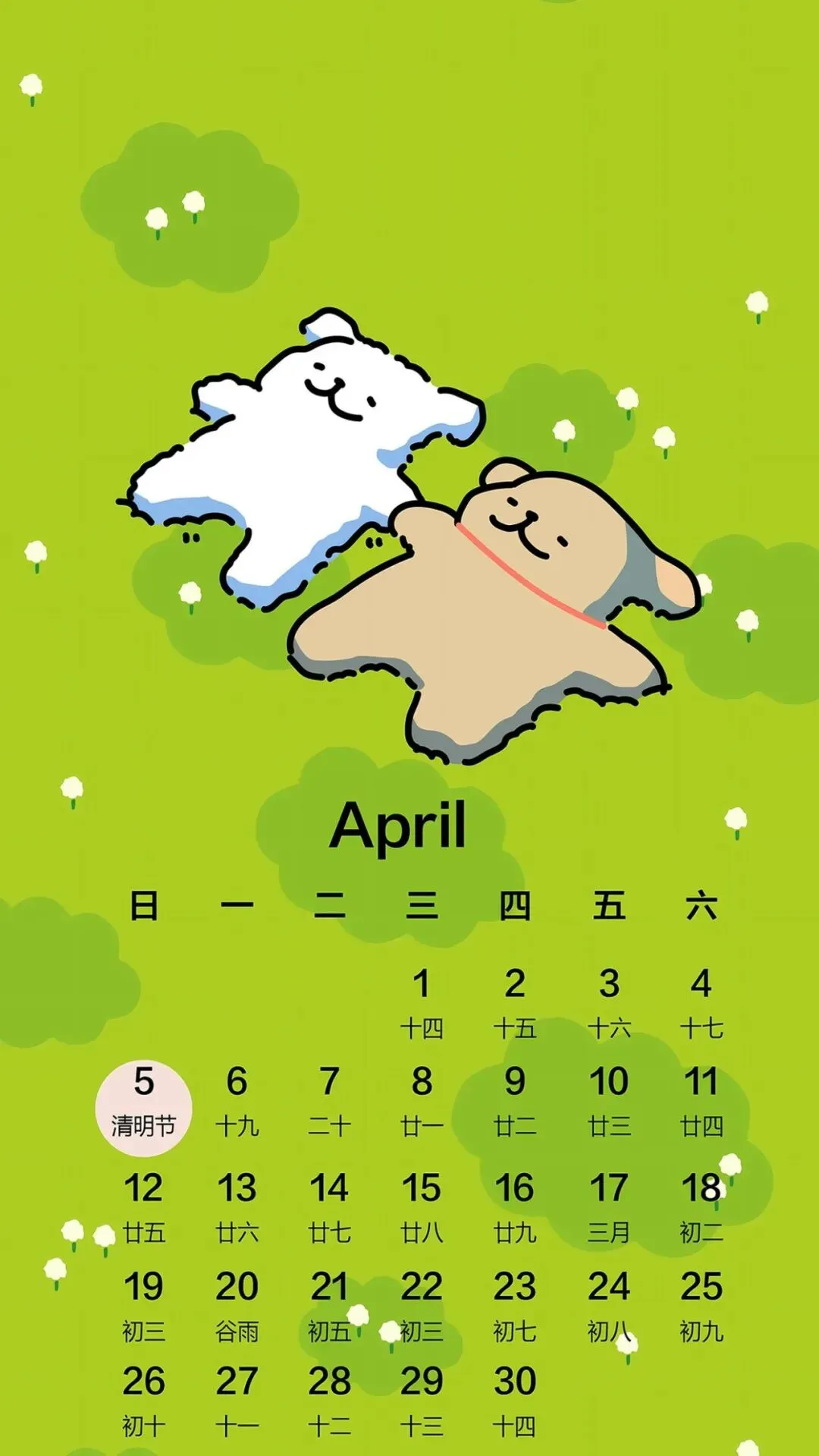 手机壁纸|线条小狗春日壁纸