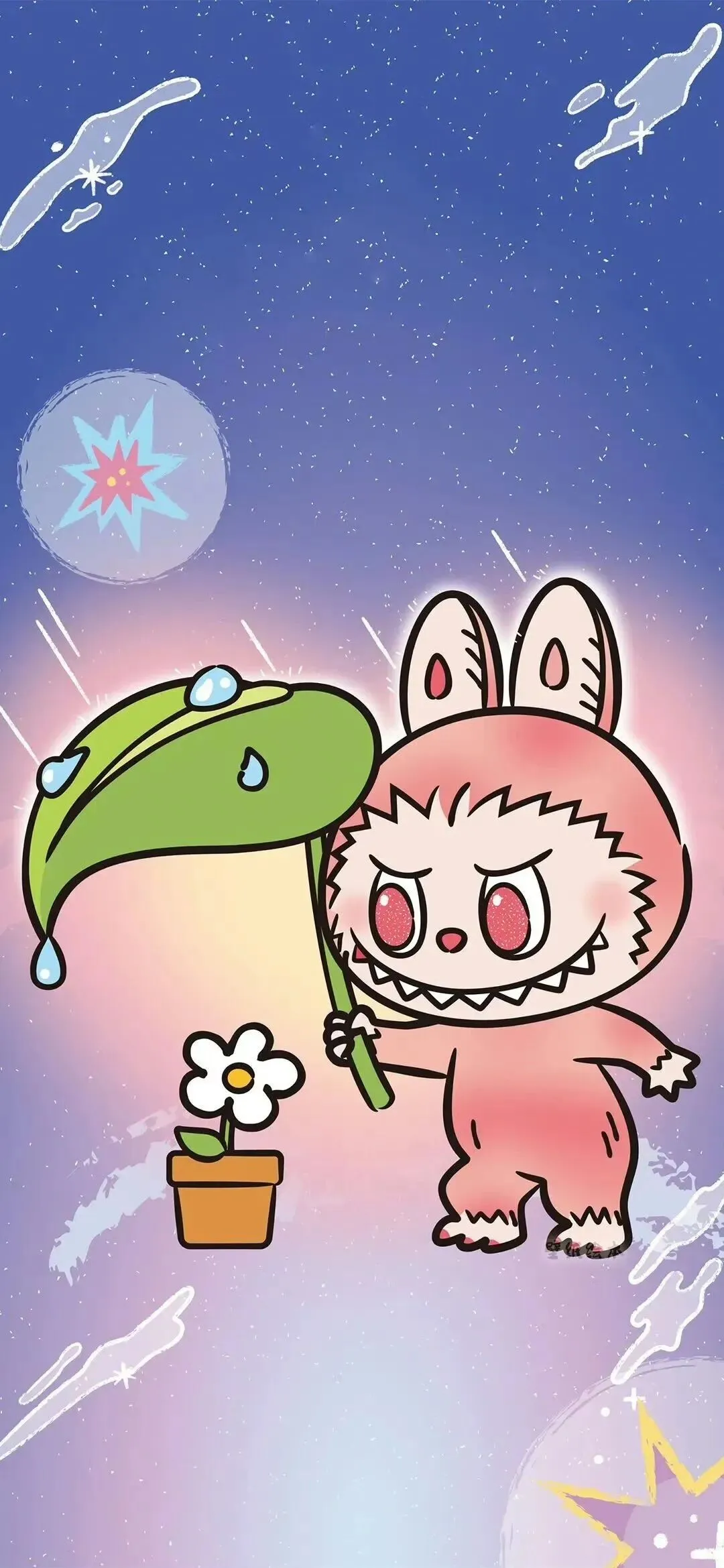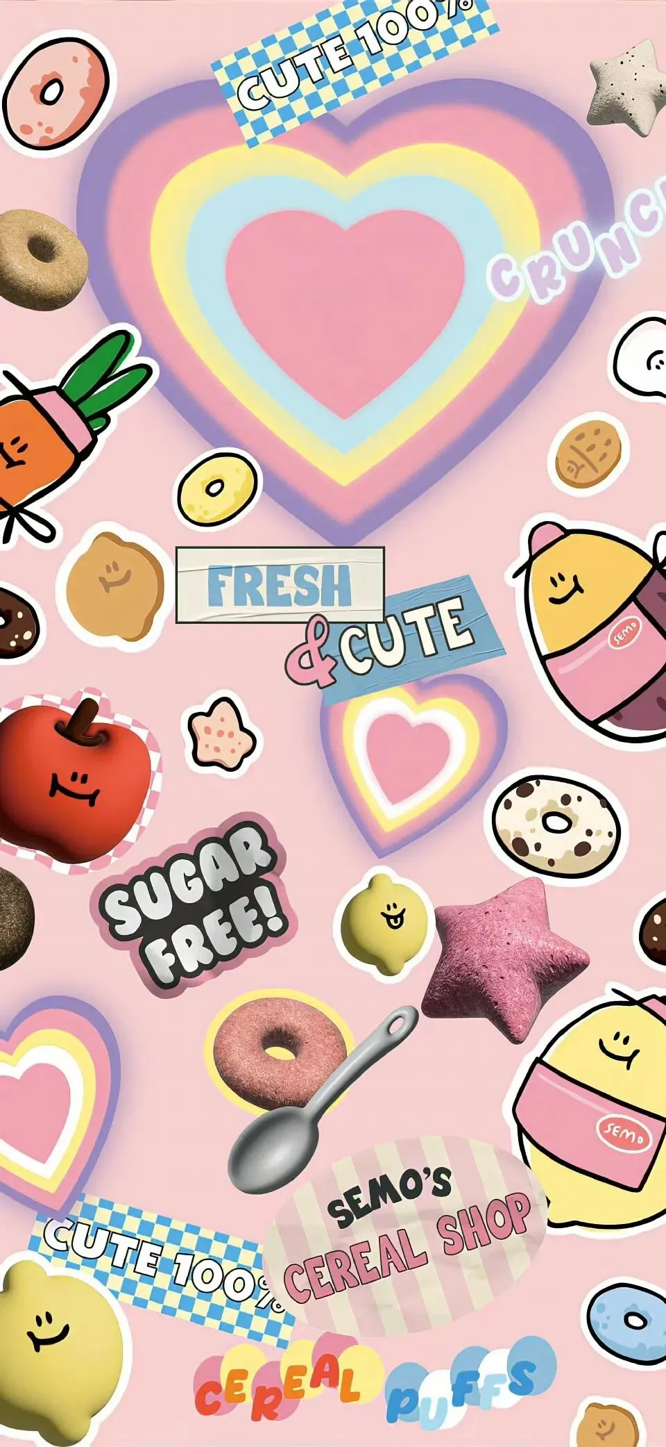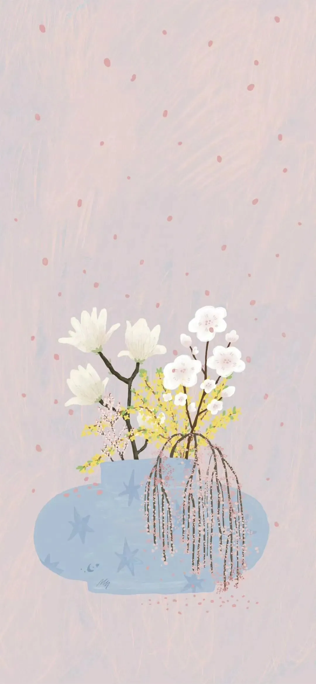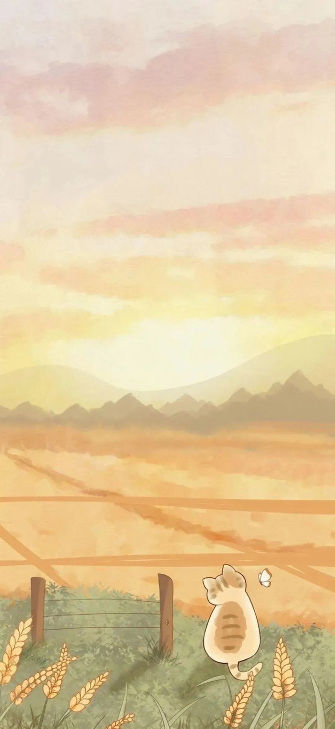 黄粉配色治愈卡通手机壁纸