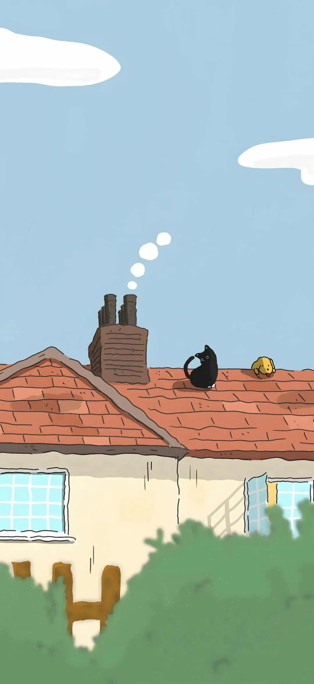 黄粉配色治愈卡通手机壁纸