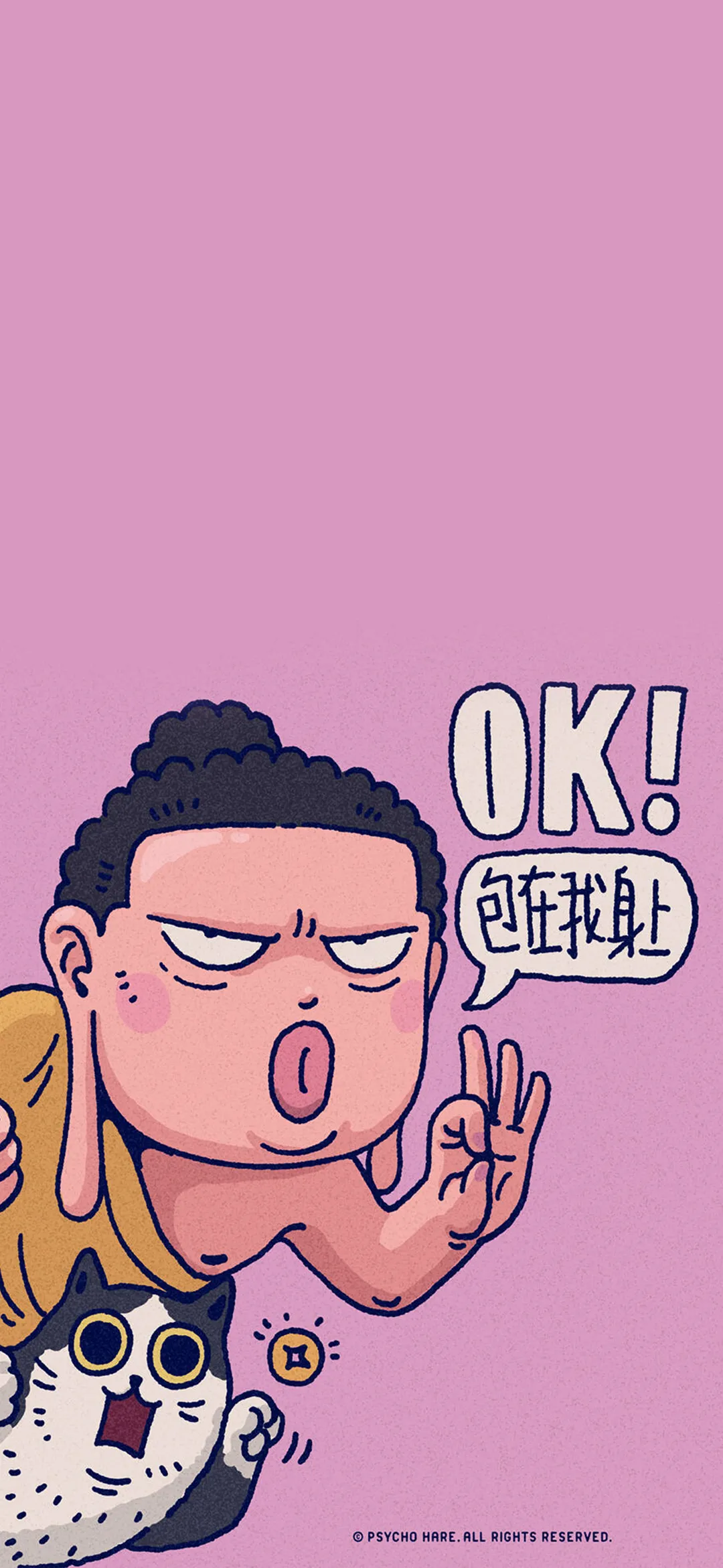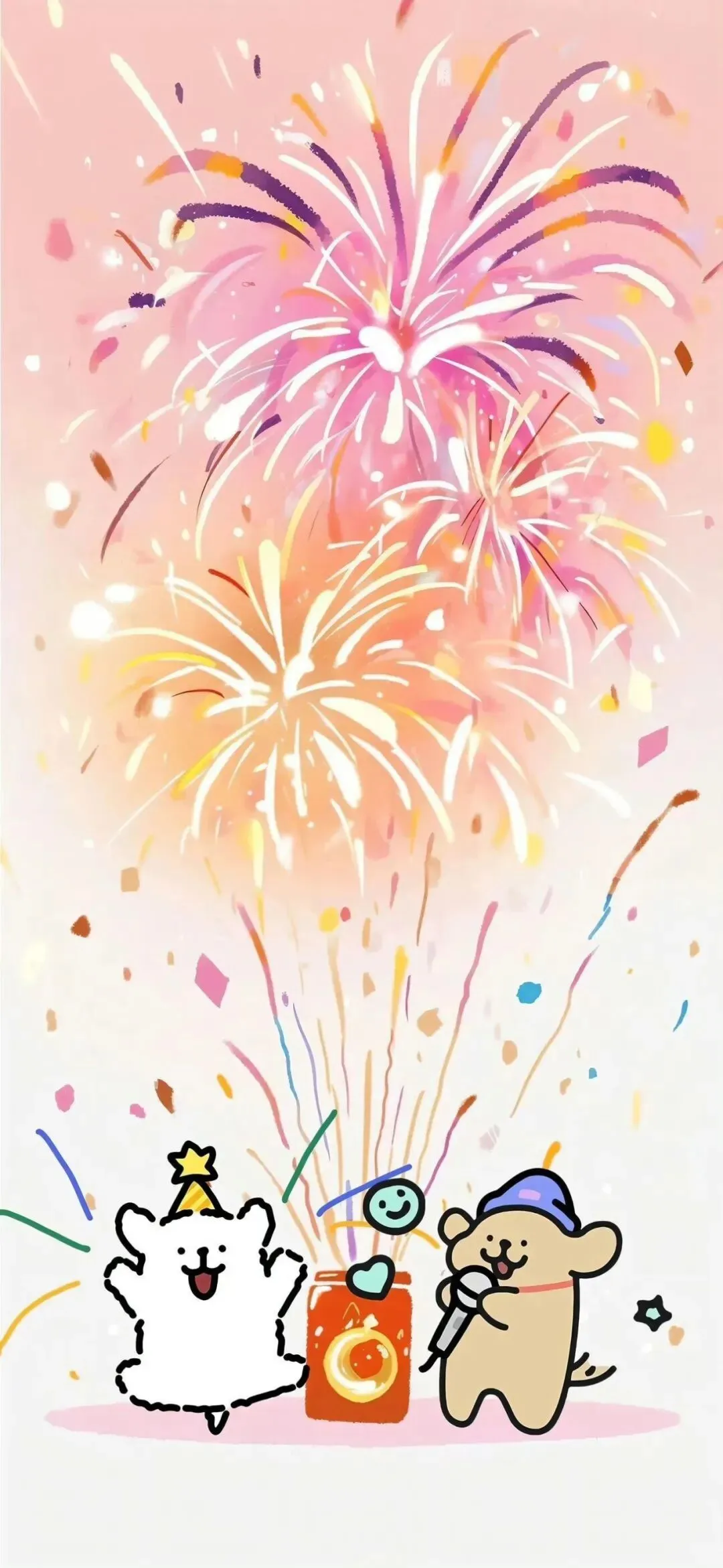 黄粉配色治愈卡通手机壁纸
