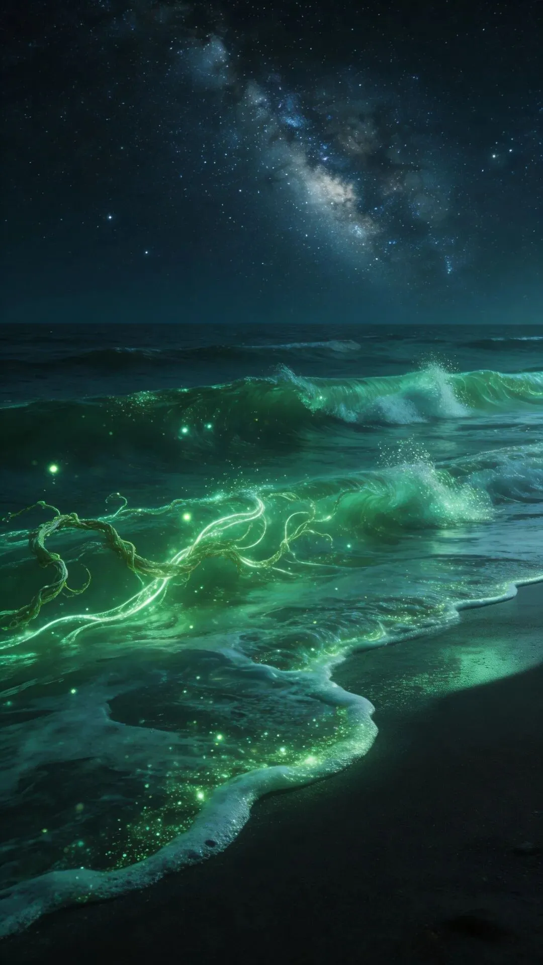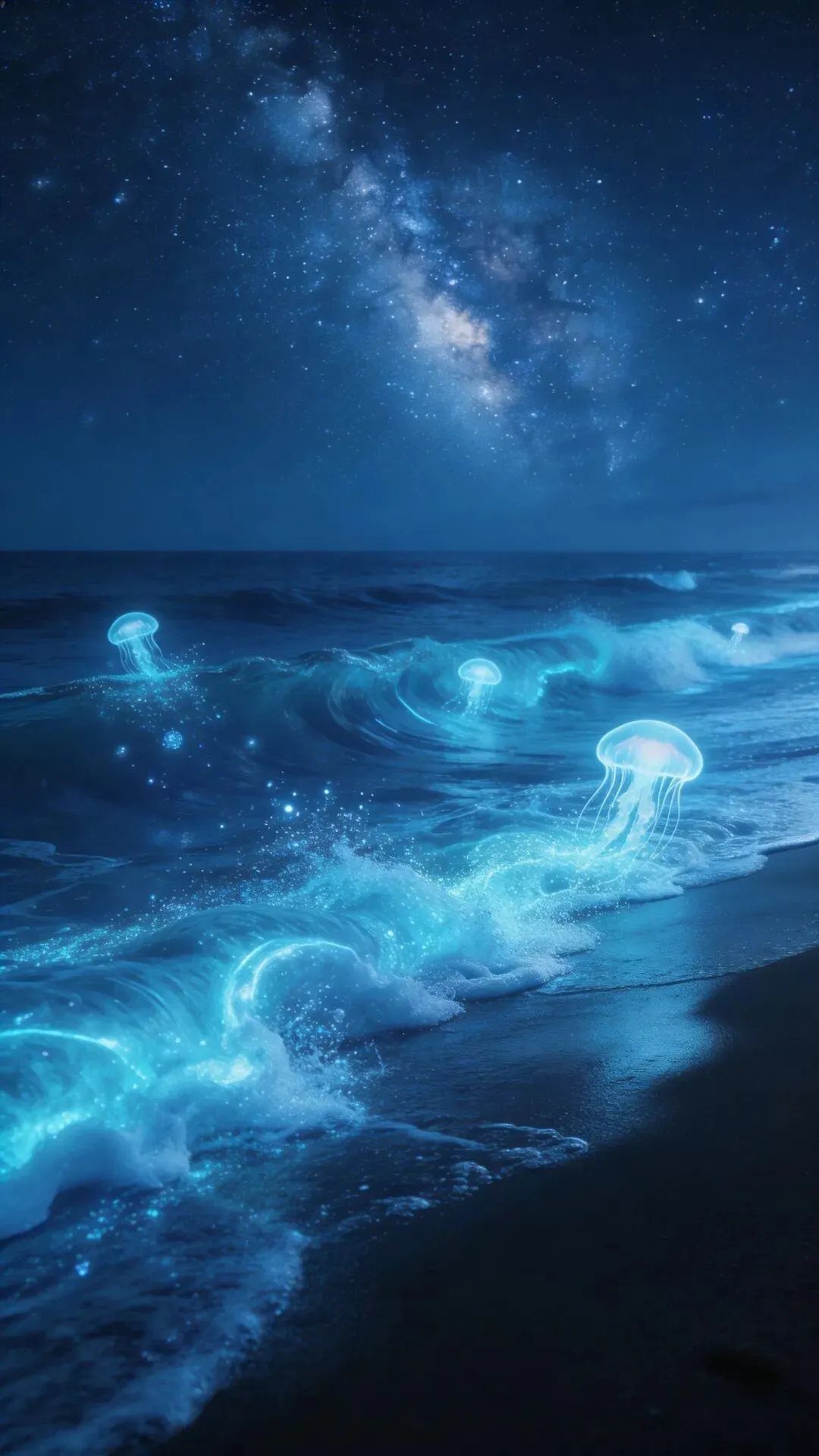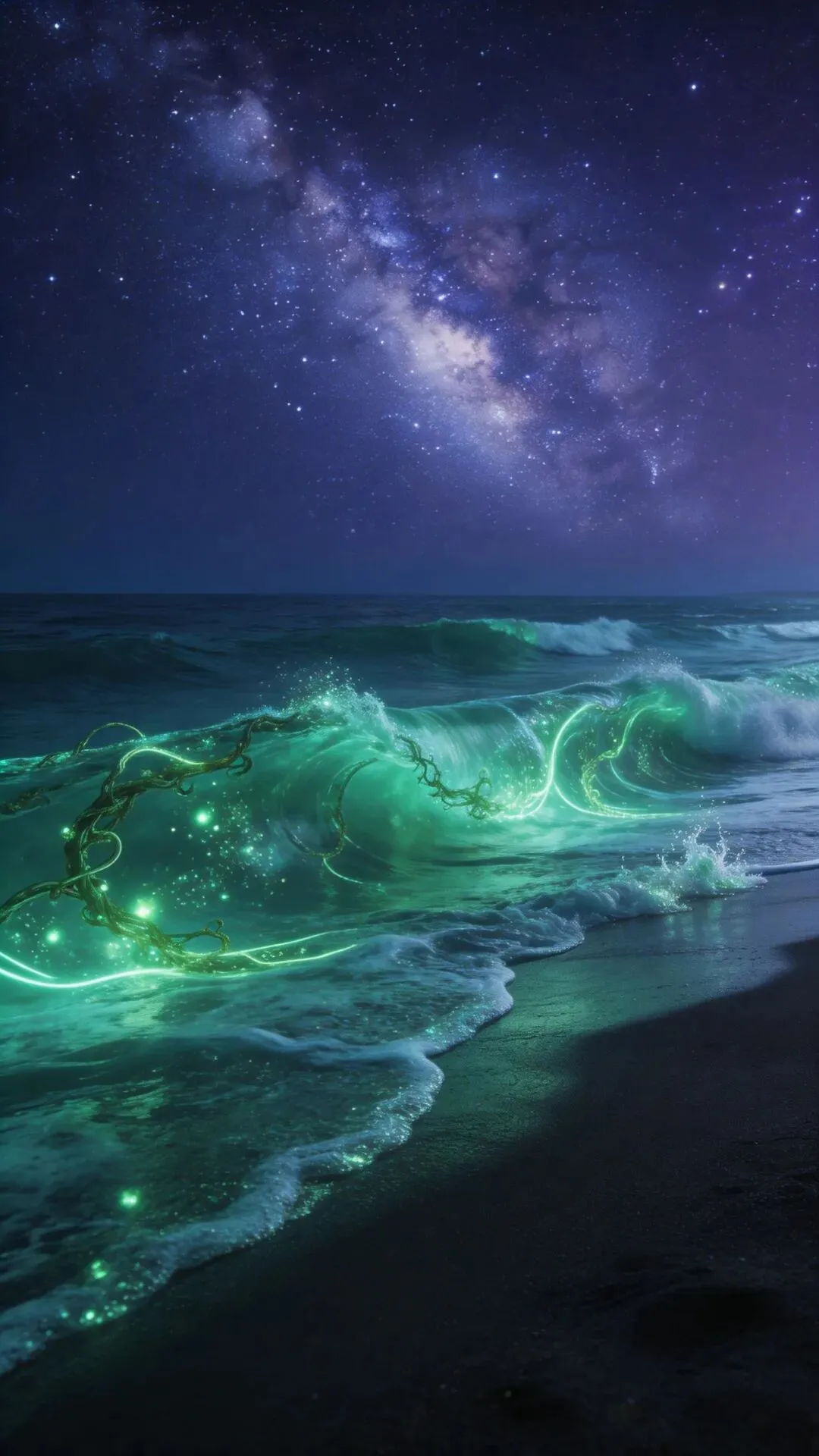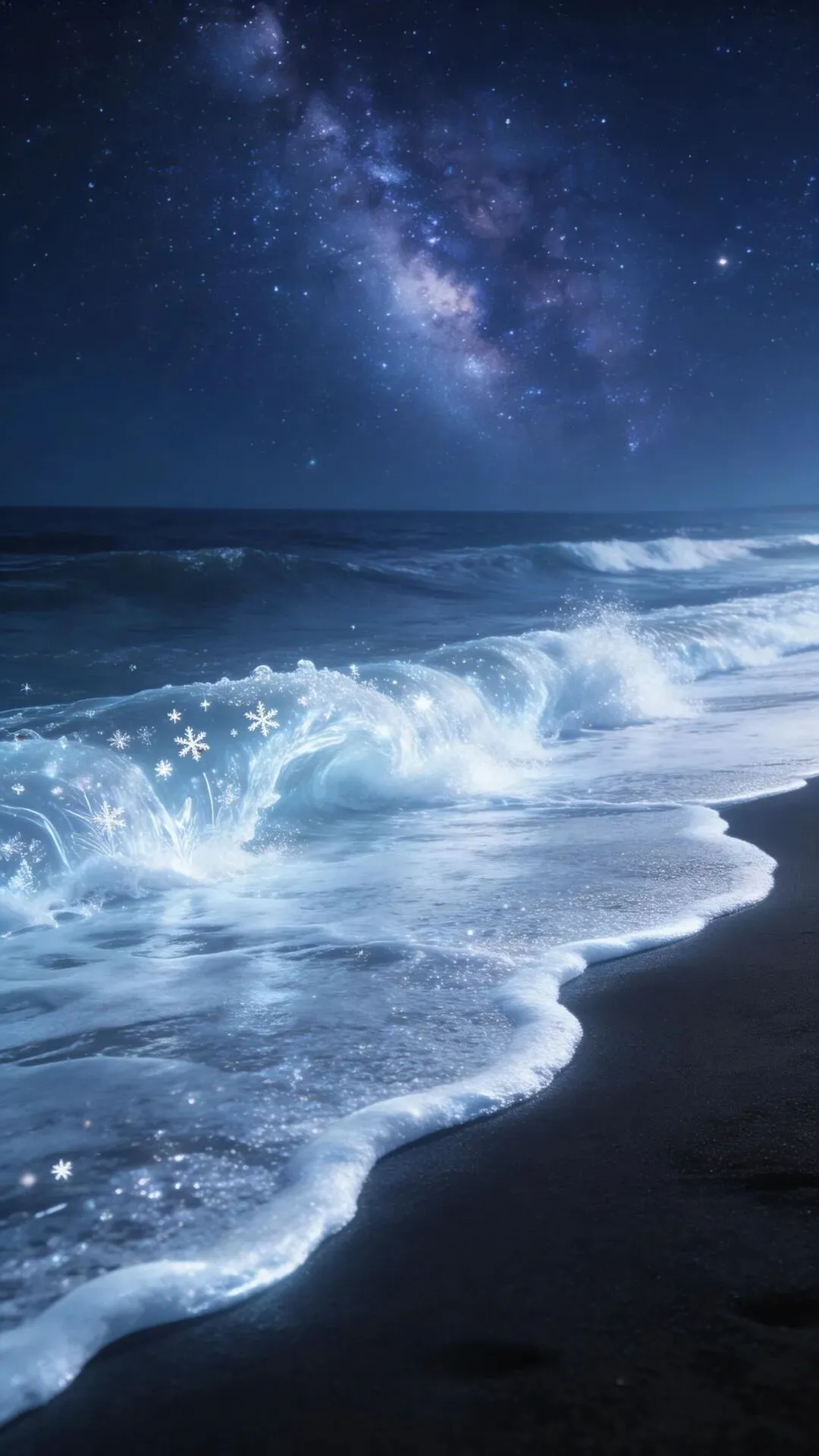 梦幻大海手机壁纸 荧光海浪,星河入梦
