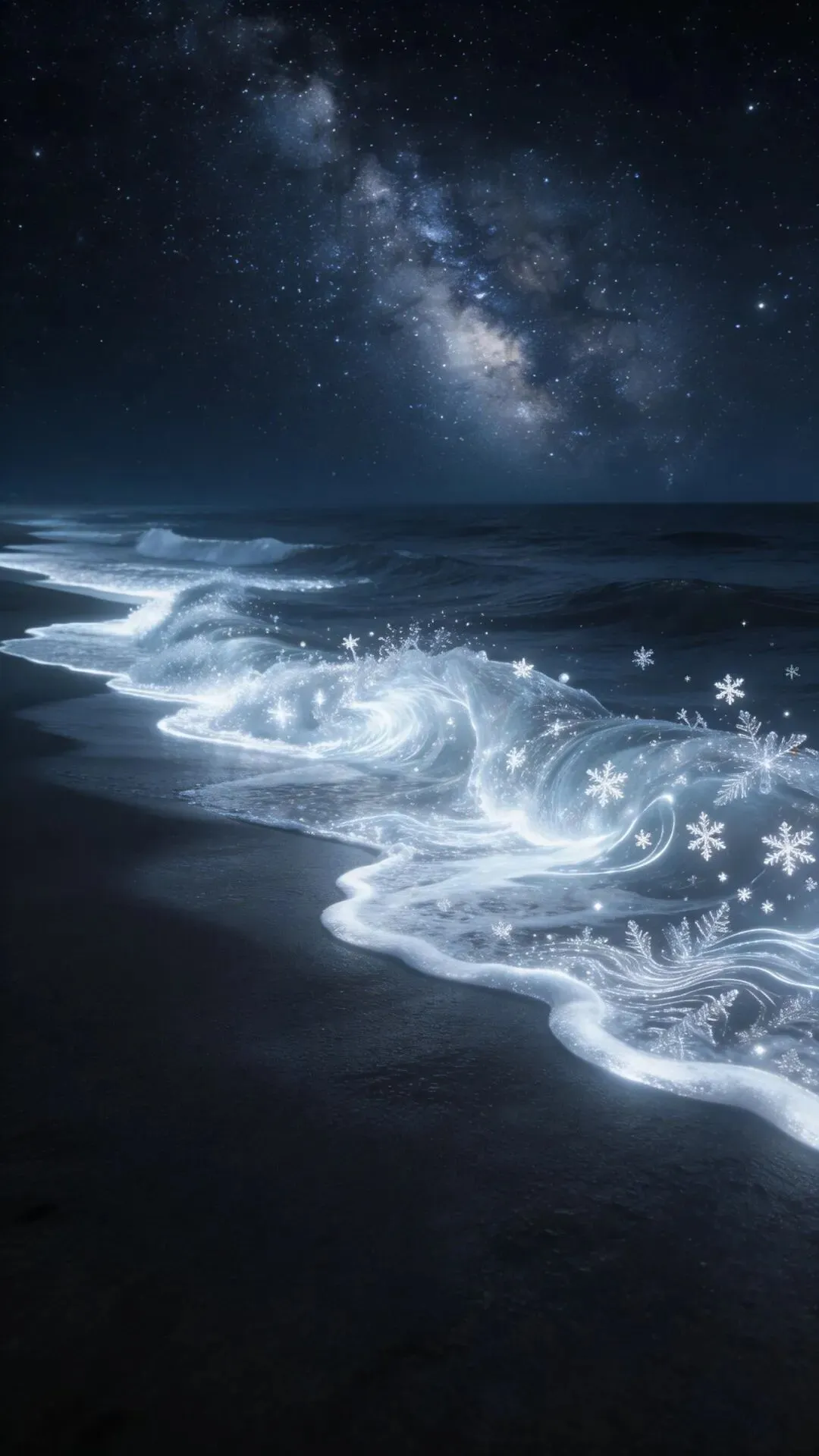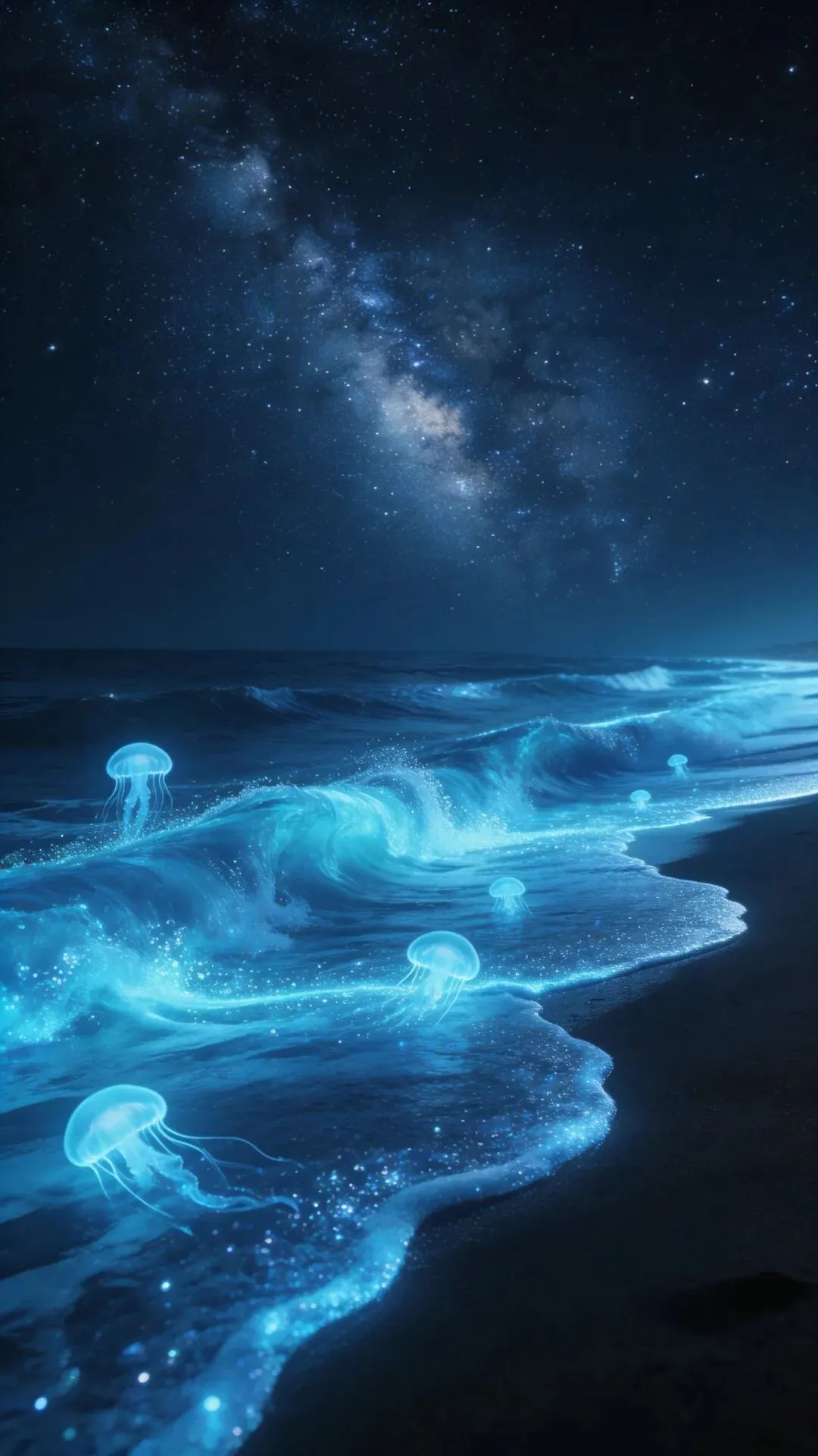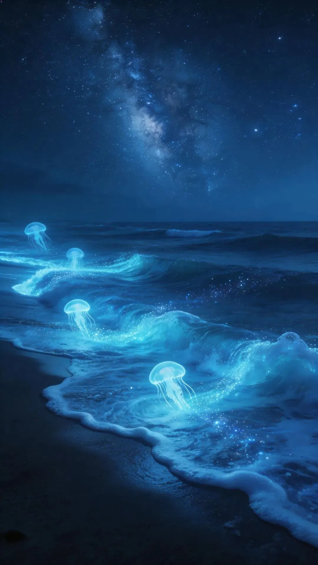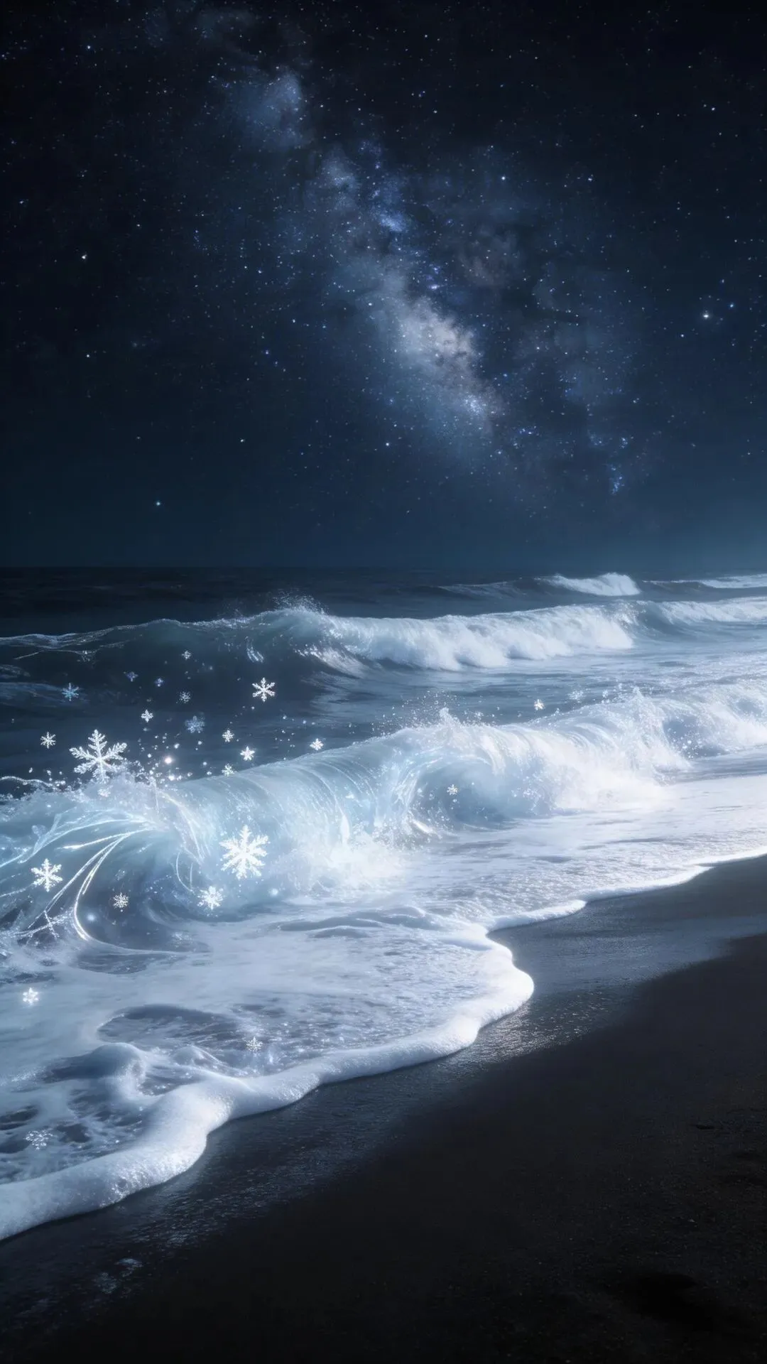 梦幻大海手机壁纸 荧光海浪,星河入梦