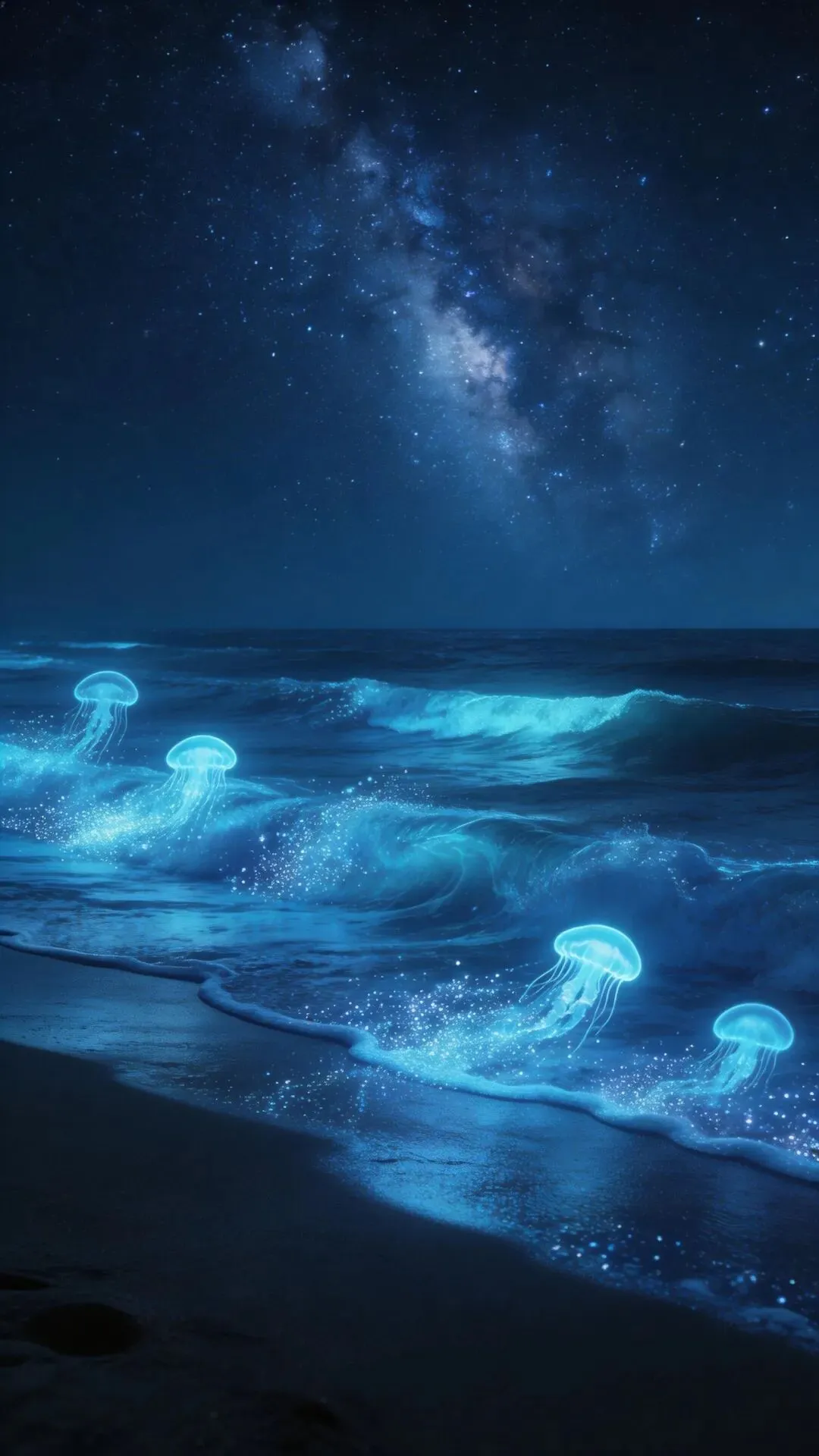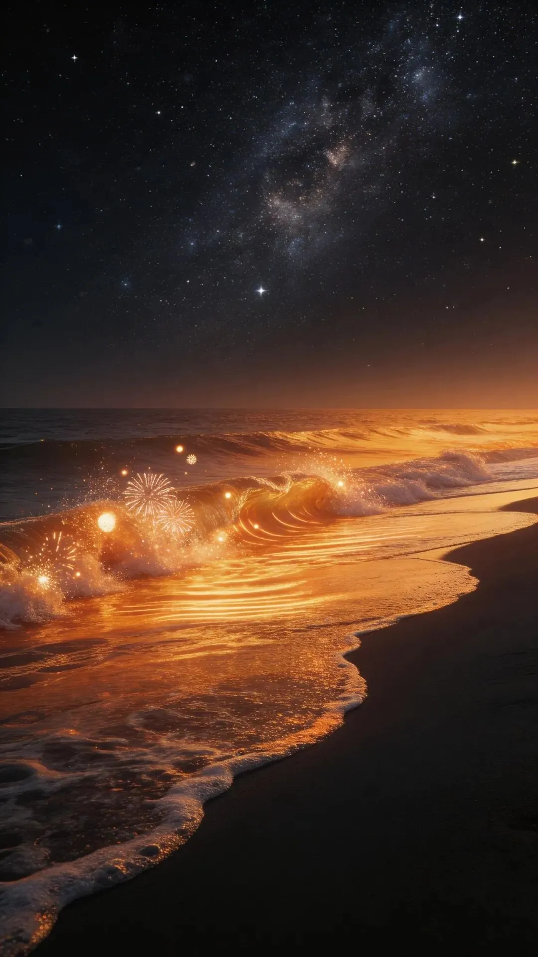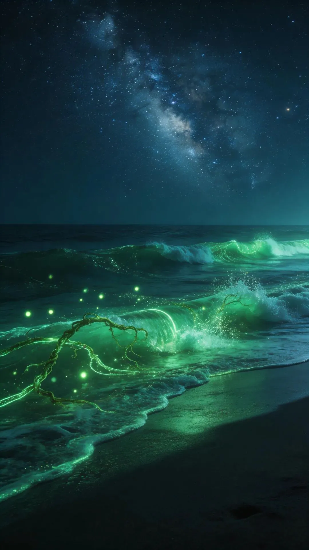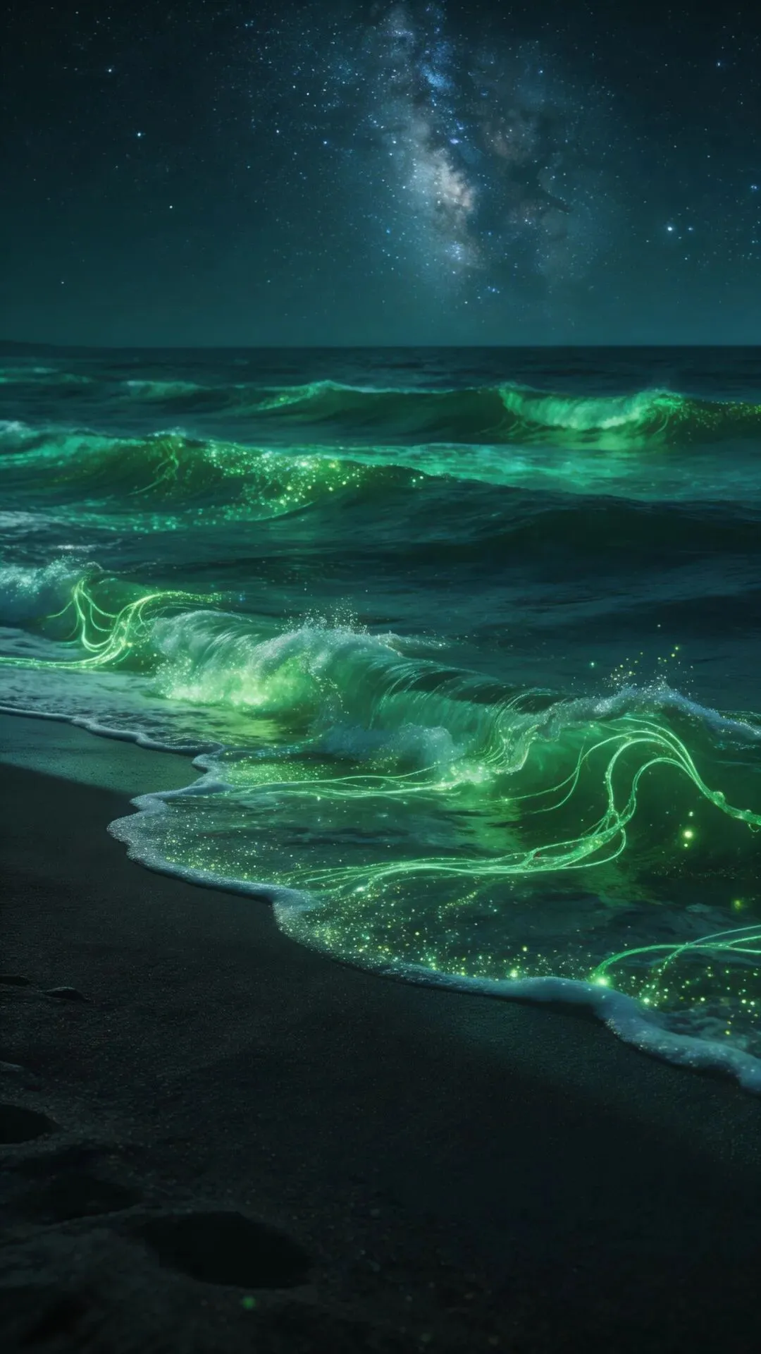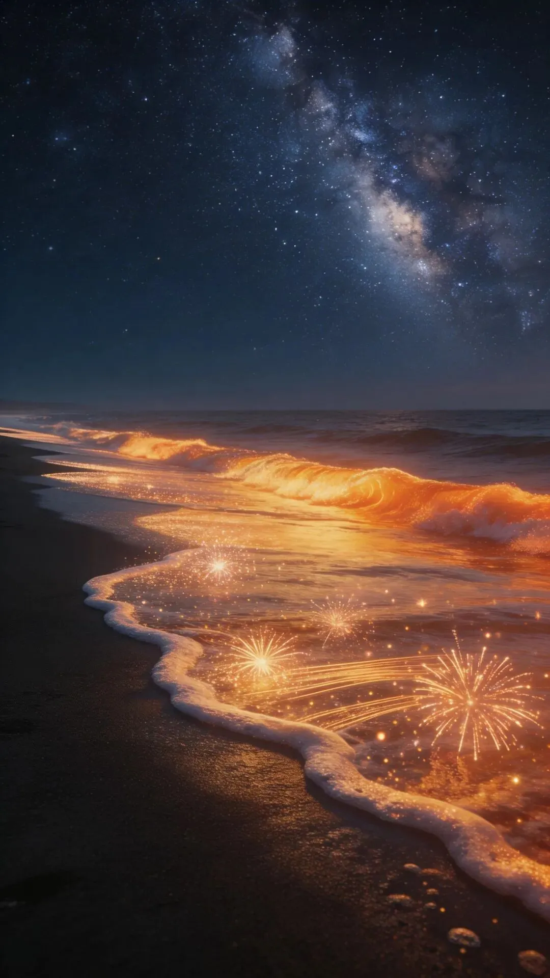 梦幻大海手机壁纸 荧光海浪,星河入梦