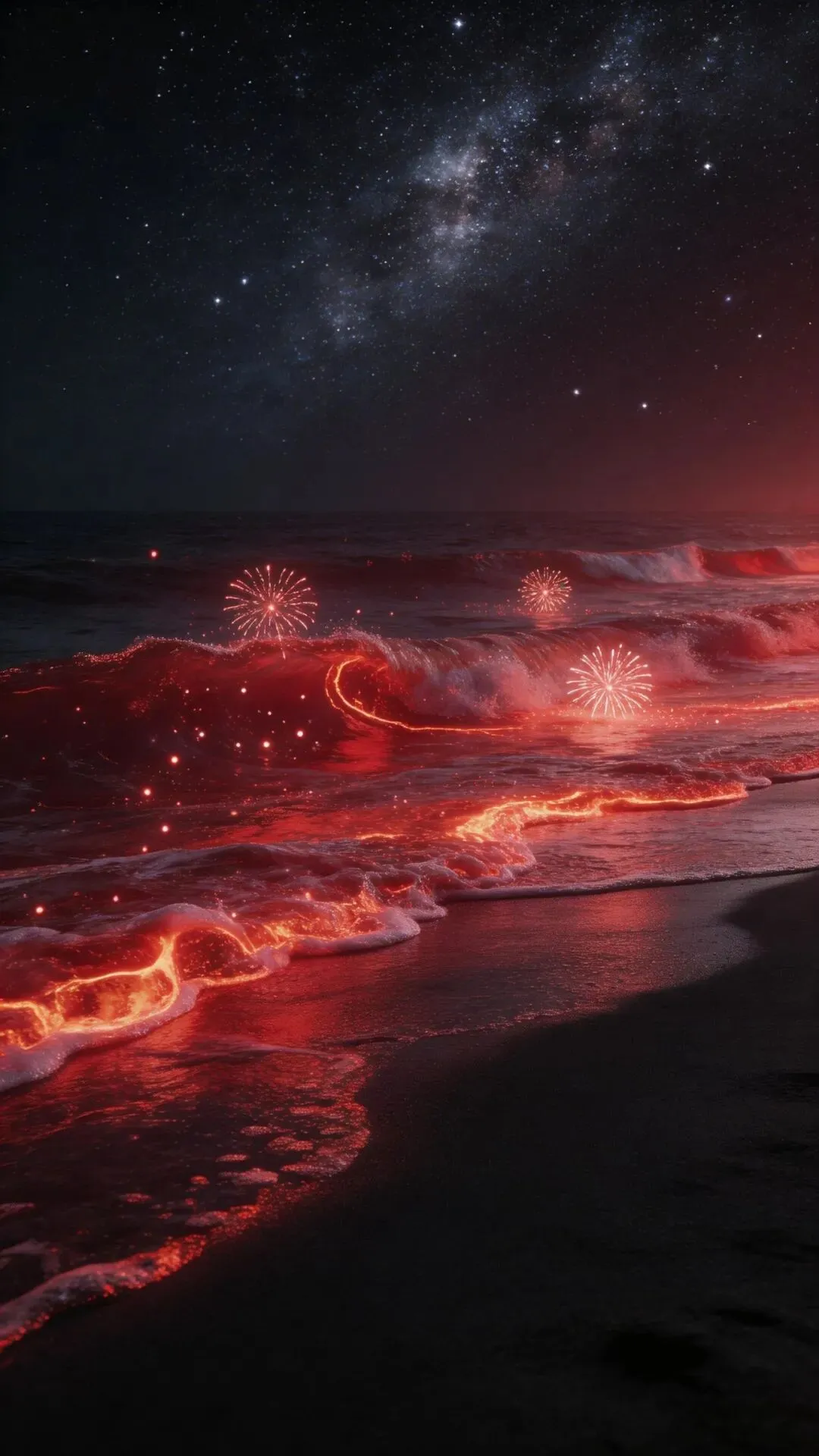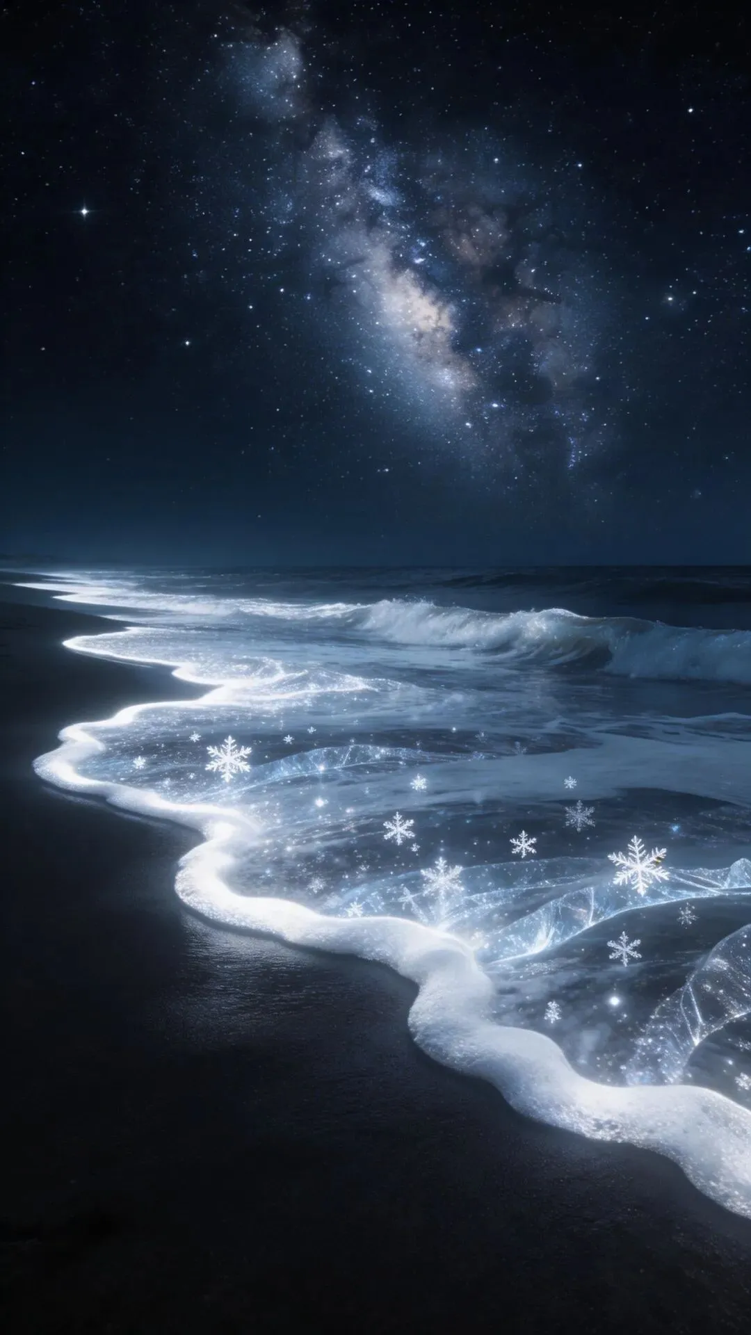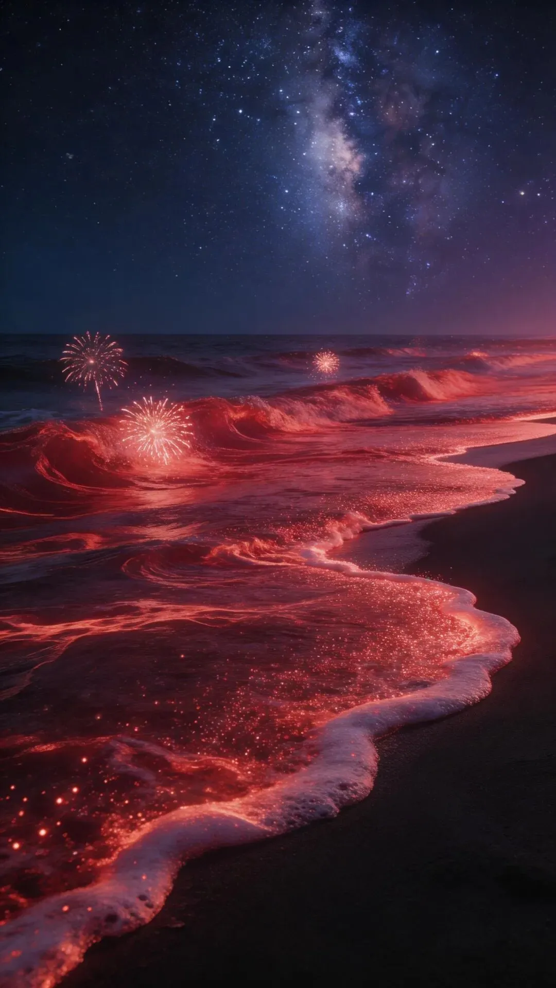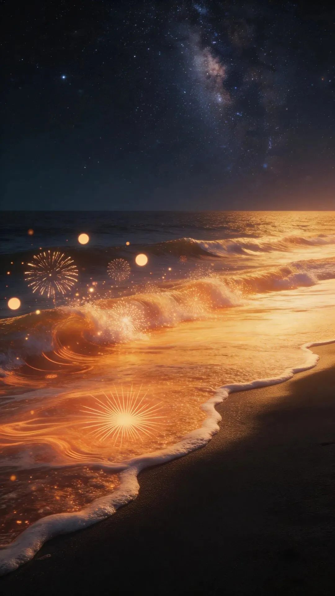 梦幻大海手机壁纸 荧光海浪,星河入梦