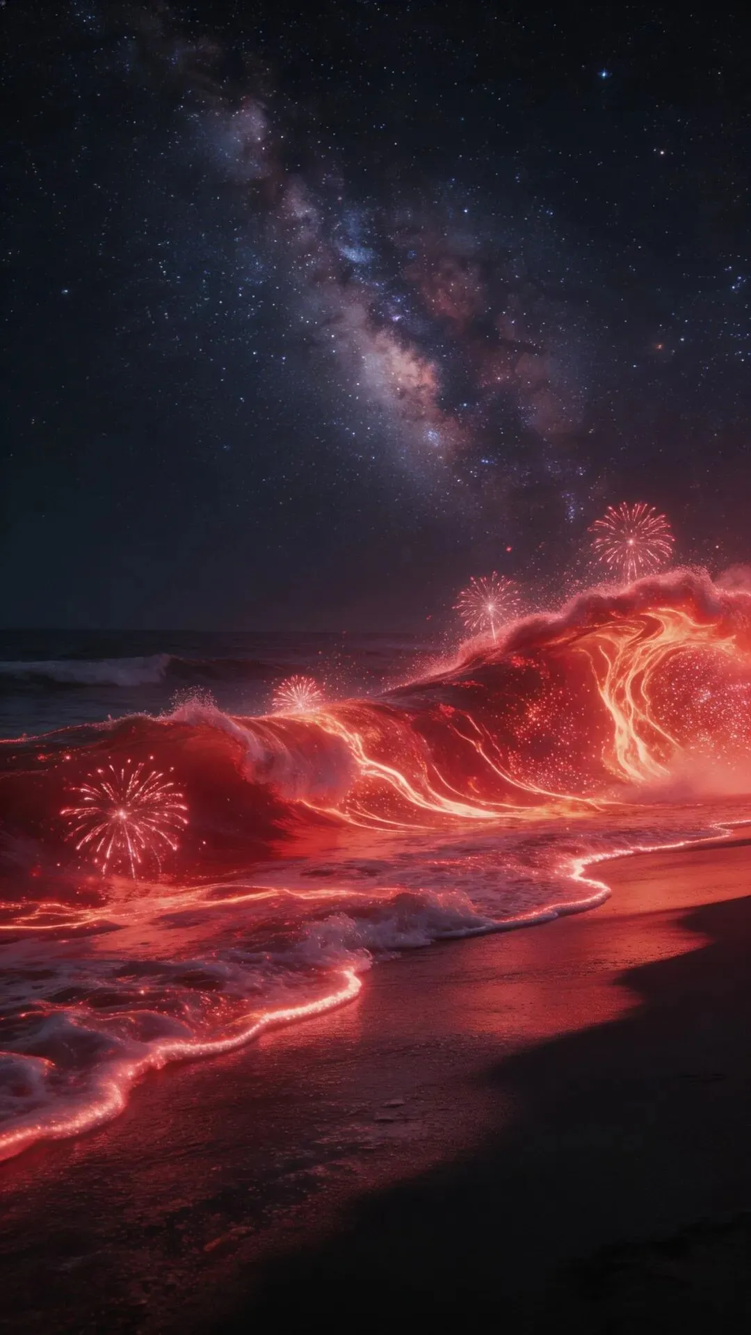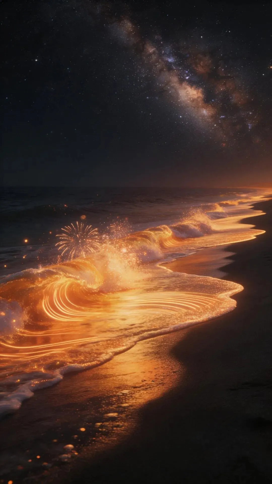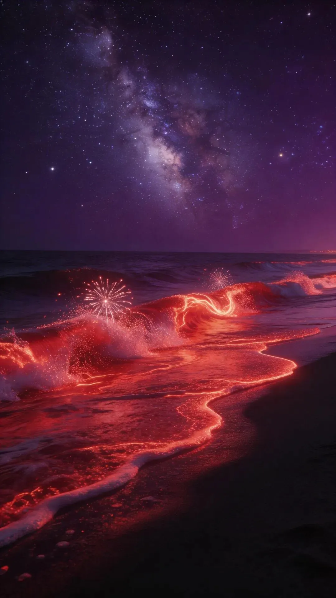 >梦幻大海手机壁纸 荧光海浪,星河入梦