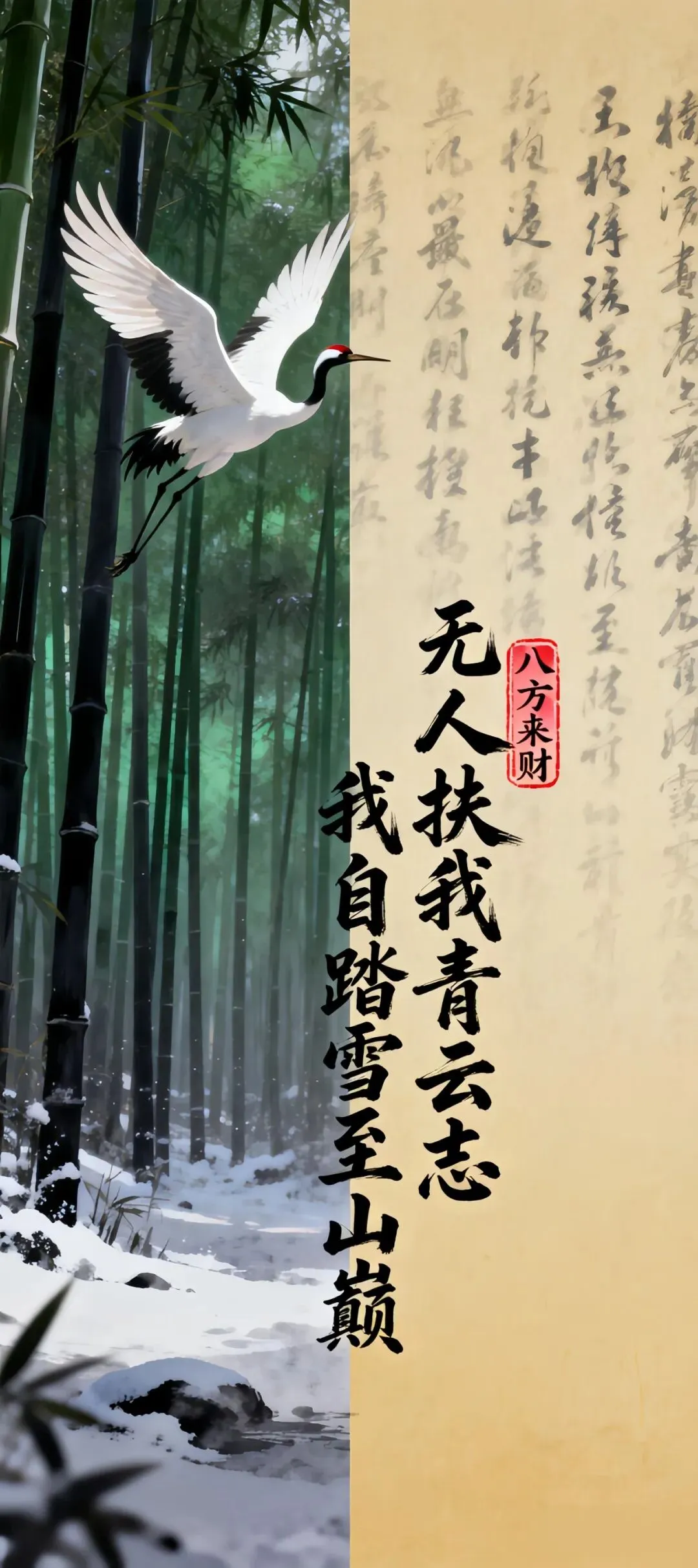 中式吉祥手机壁纸合集:仙鹤墨竹、月夜山景、金蝶古卷、剪纸月夜