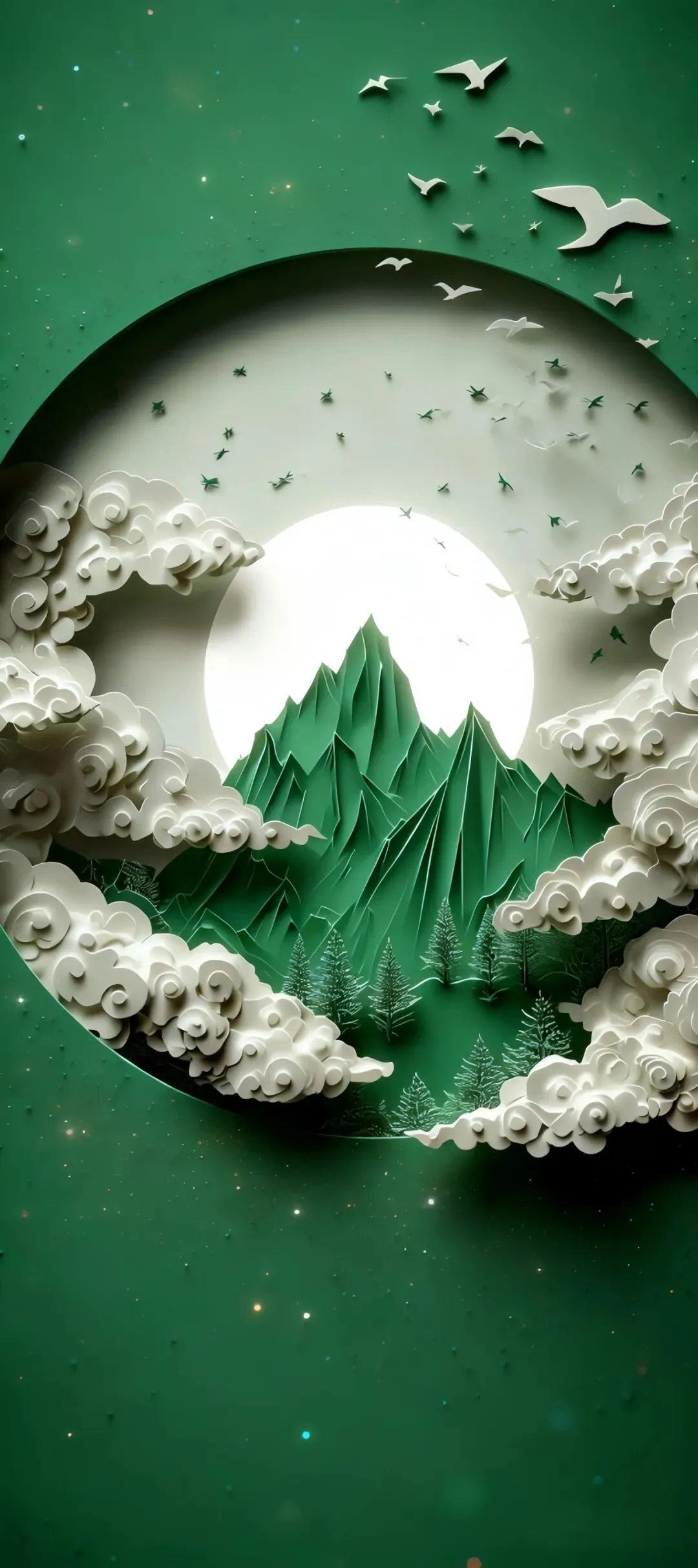 >中式吉祥手机壁纸合集:仙鹤墨竹、月夜山景、金蝶古卷、剪纸月夜
