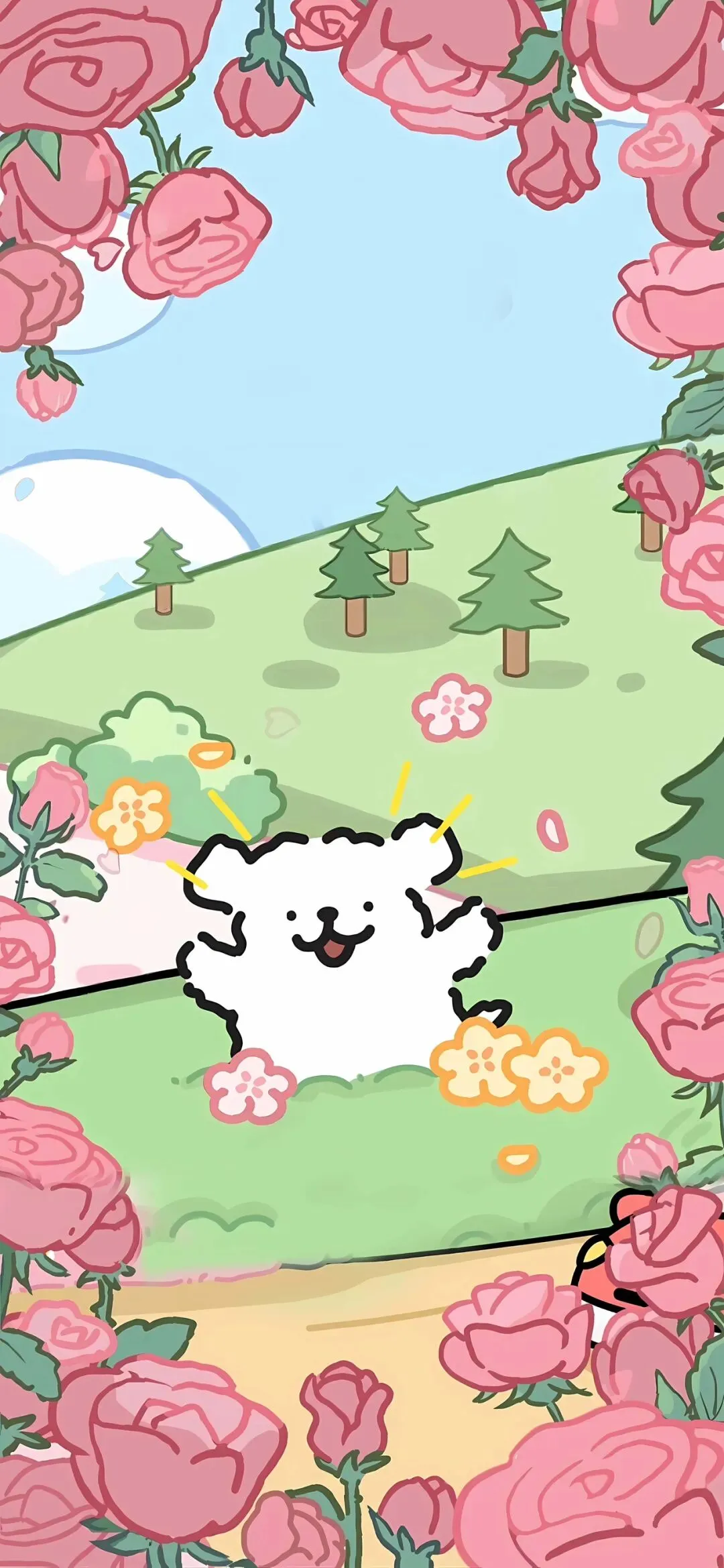>线条小狗春天4k手机壁纸~(可直接保存)