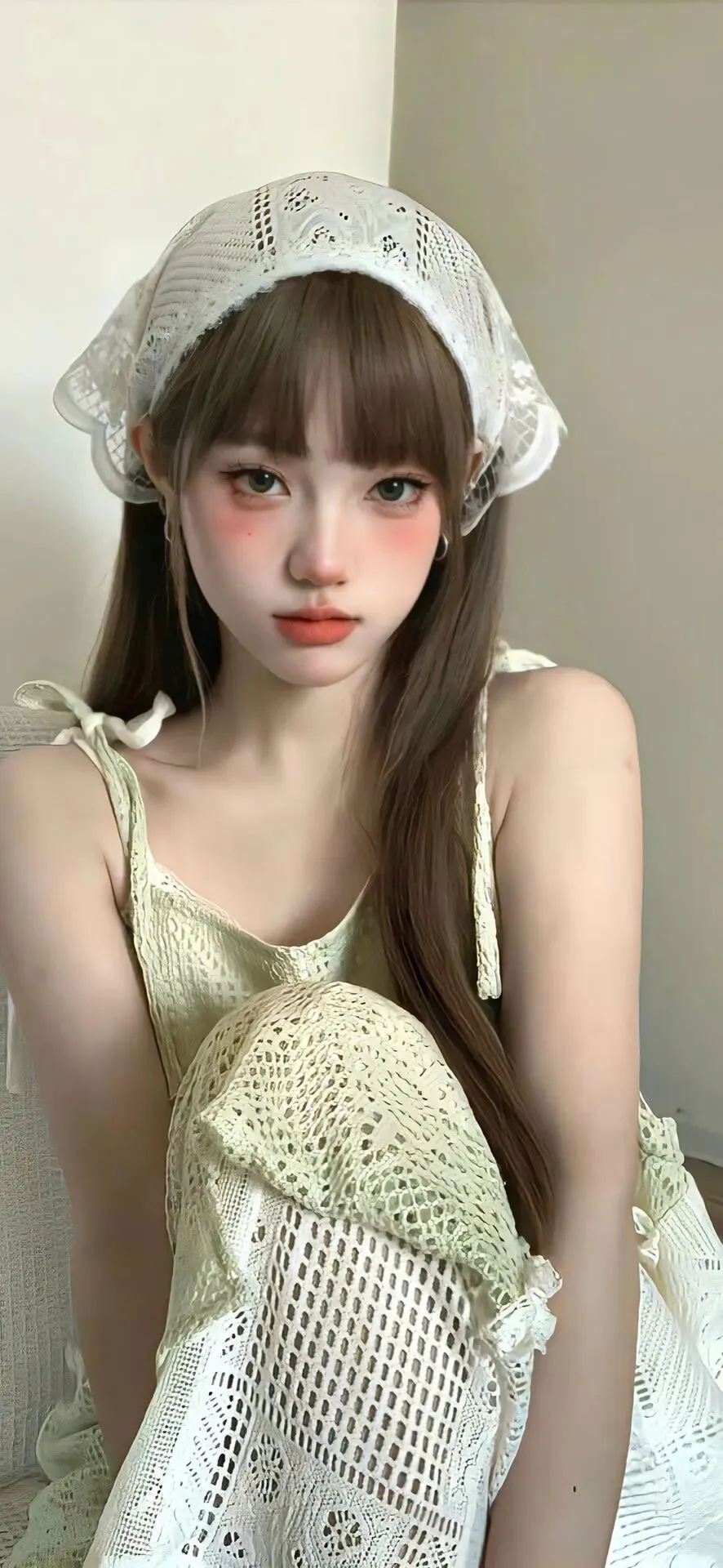 清冷易碎感|奶茶色编发甜酷少女手机壁纸