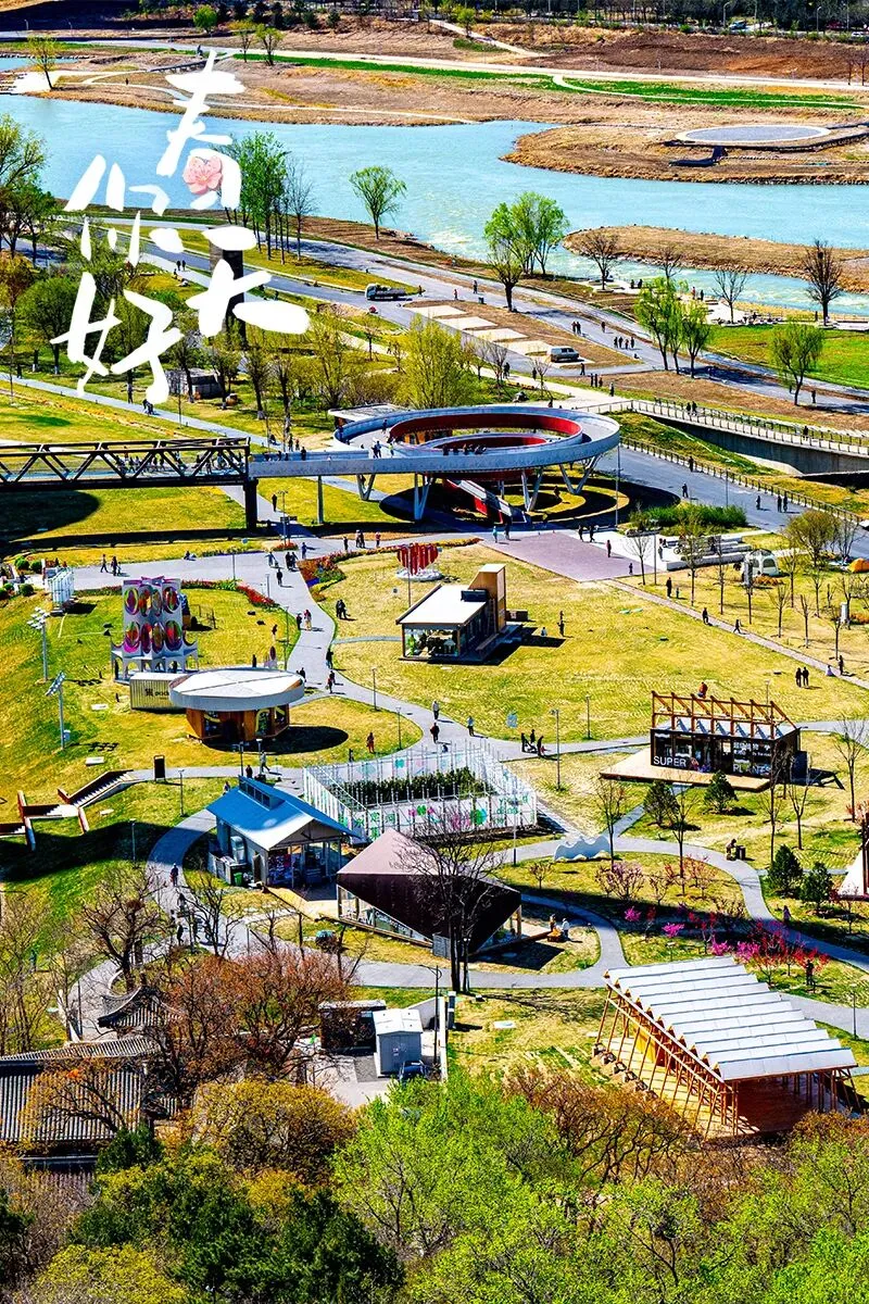 在永定河集,春风揉碎了阳光洒在河面上,开阔的草坪与市集的烟火气交织。这里适合发呆,看风筝高飞,感受水天一色的治愈。