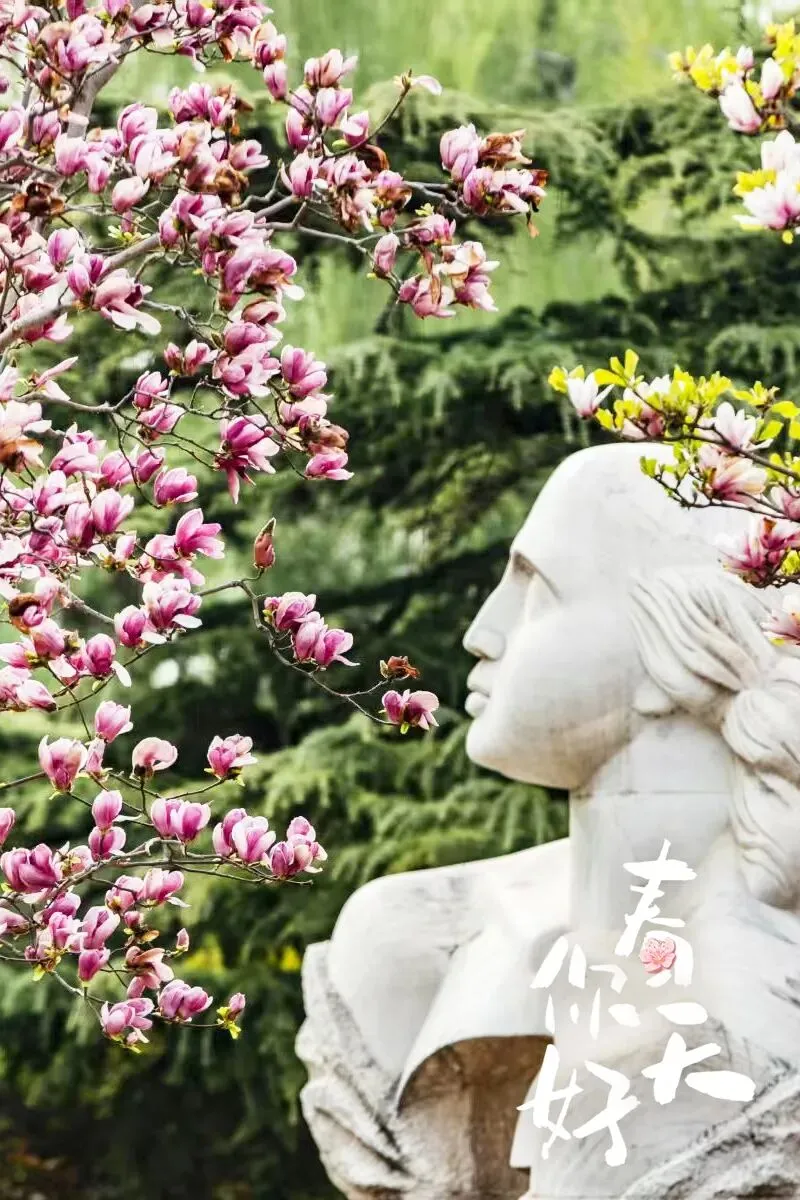 玉兰如雪,雕塑静立。北京国际雕塑公园是艺术与花海的交汇处,漫步其间,能听见春天穿过花瓣的细碎声响。