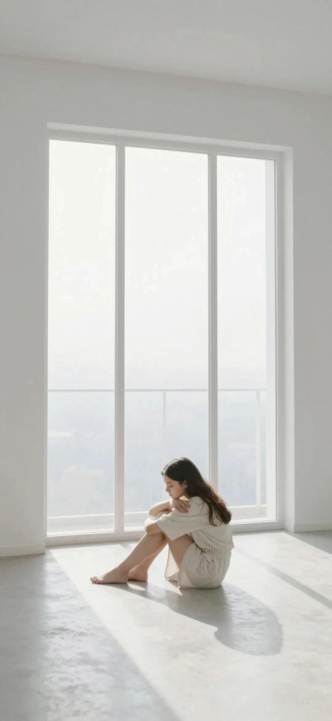 手机墙纸.白色画布,极简风格,白色墙壁,中性色调,女性化风格,波西米亚美学,正面视角,画作左侧无装饰,白色背景