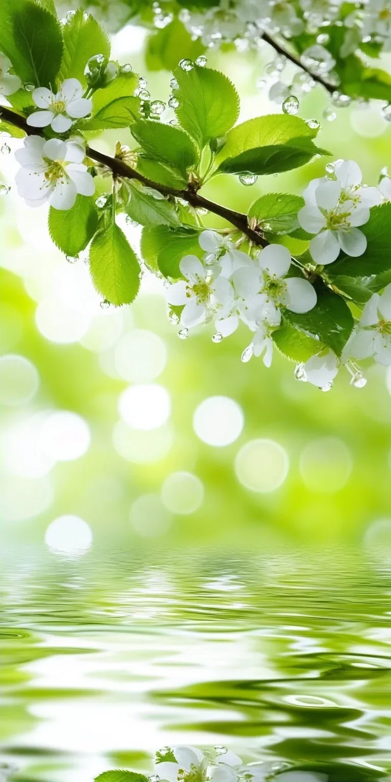 >清新水珠与花影 | 高清手机壁纸